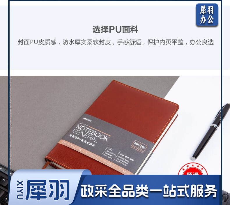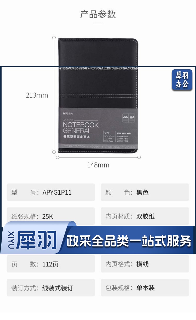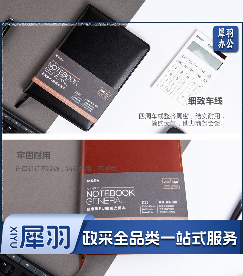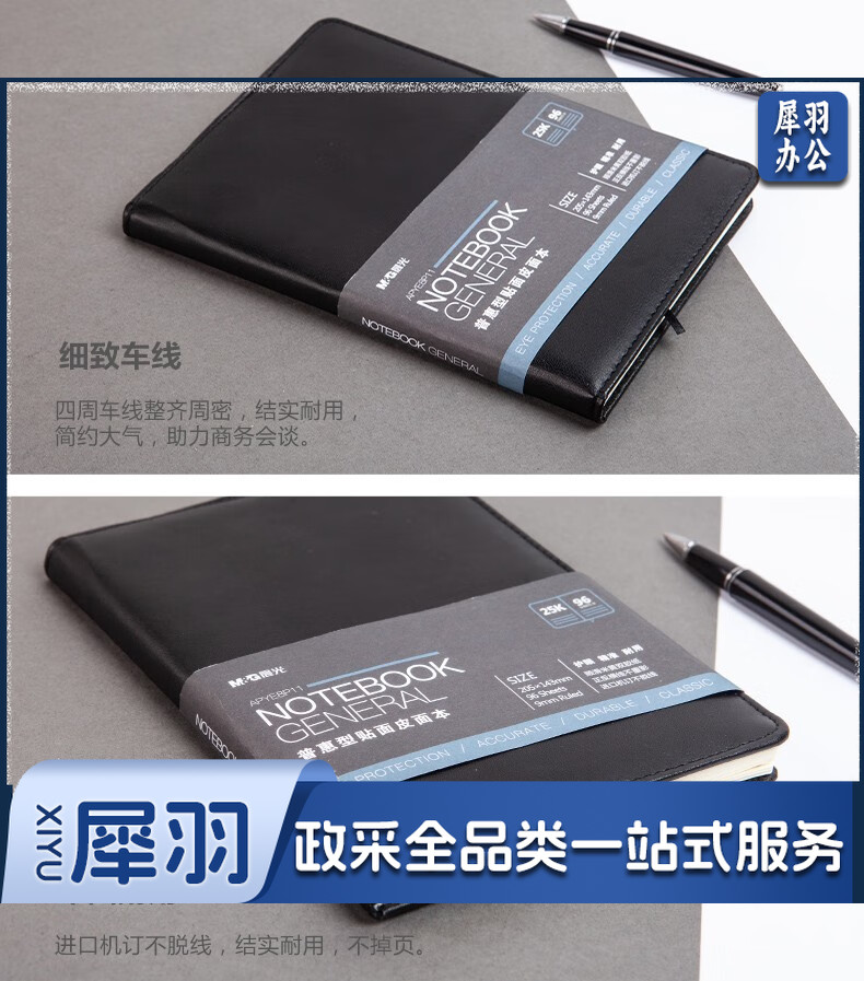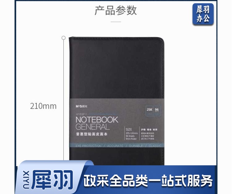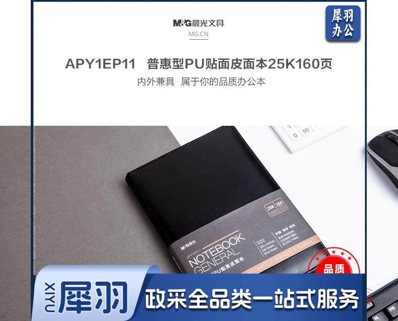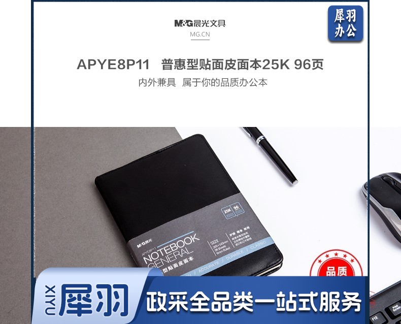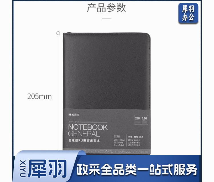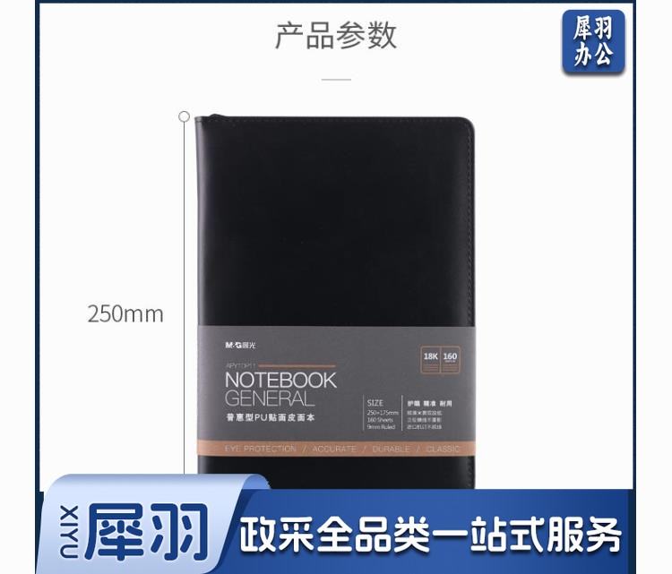 晨光(M&G) 18K/25k办公笔记本 160页会议记录PU贴面皮面本 普惠型日记 APYE7P11黑色18K-96页