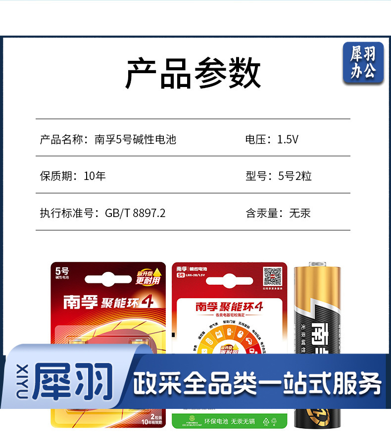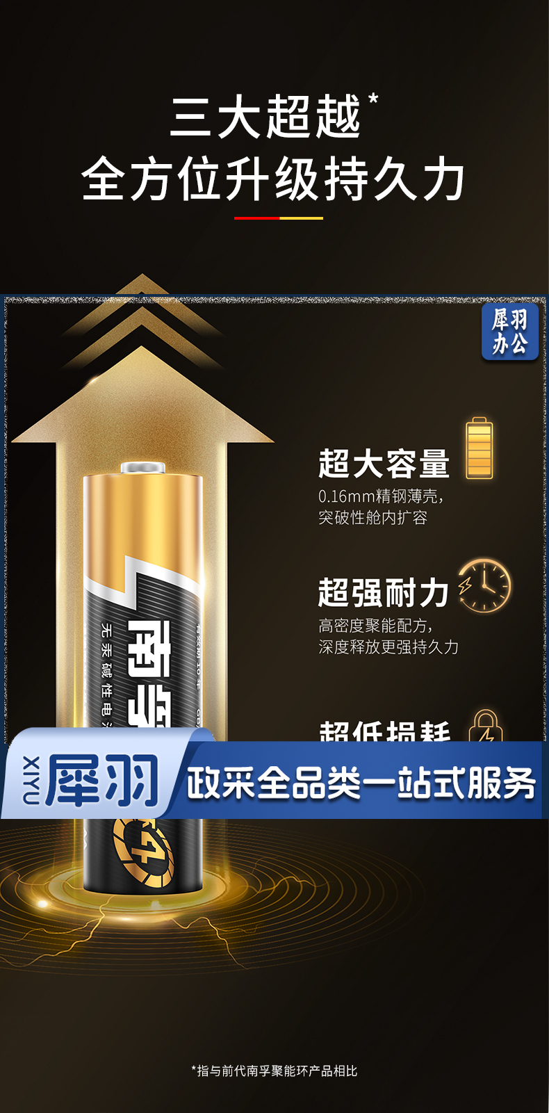 1100009413EA 南孚 LR6 碱性电池 5号、2粒装 南孚聚能环电池 电力强劲持久