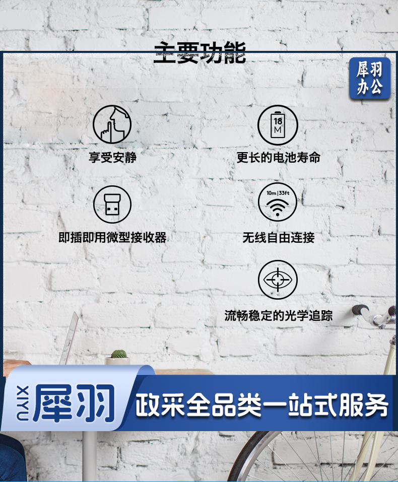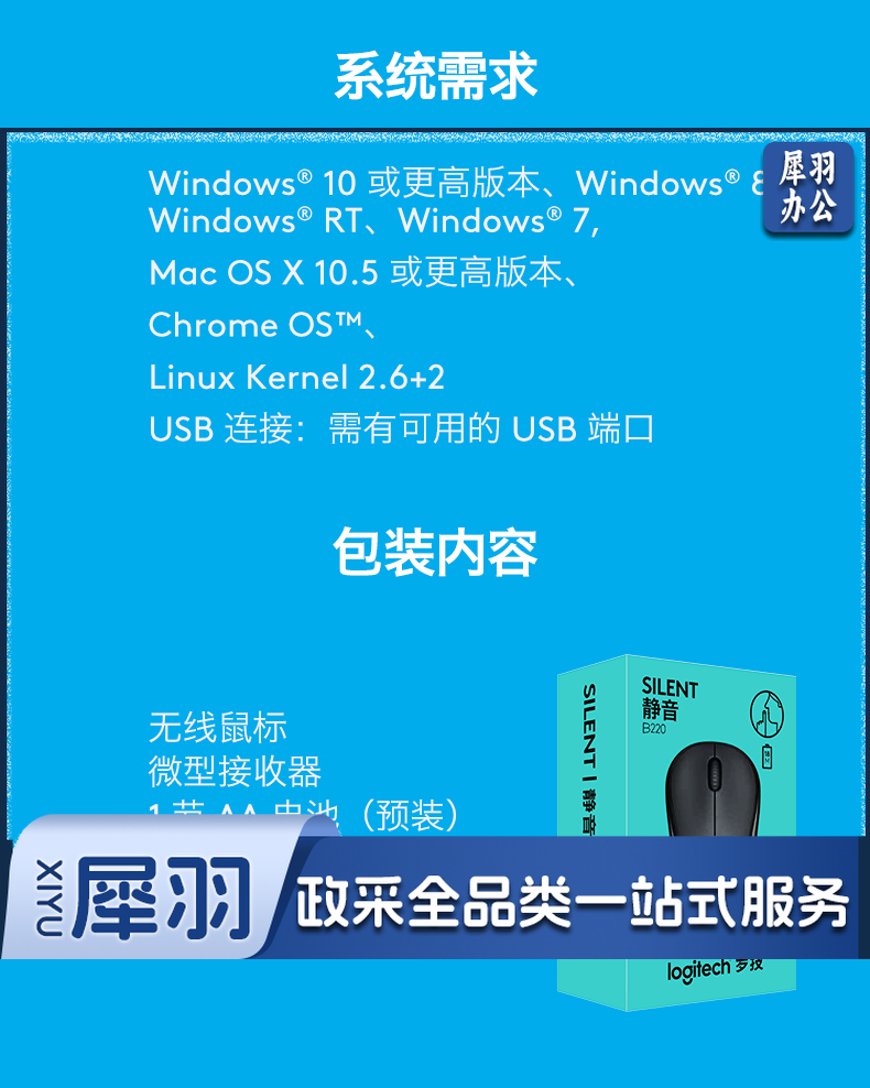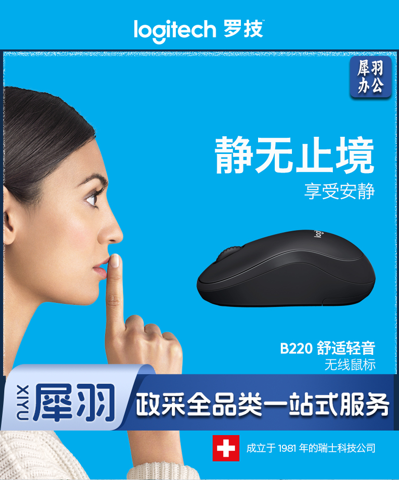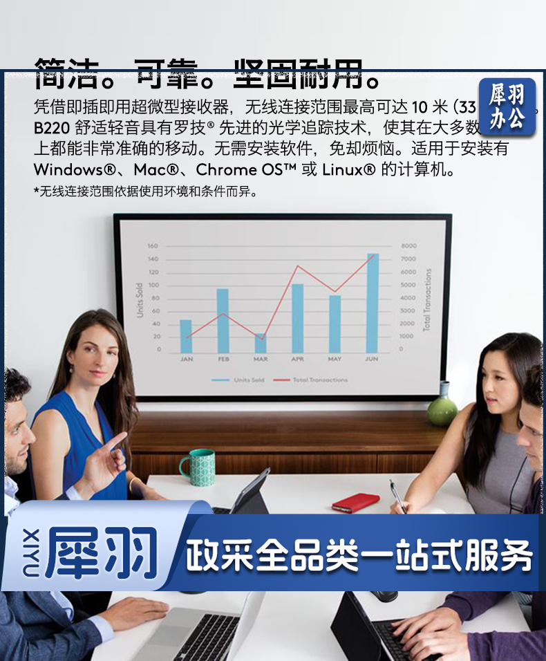 罗技(Logitech)B220企业版 鼠标 无线鼠标 办公鼠标 轻音鼠标 对称鼠标 黑色 带无线2.4G接收器