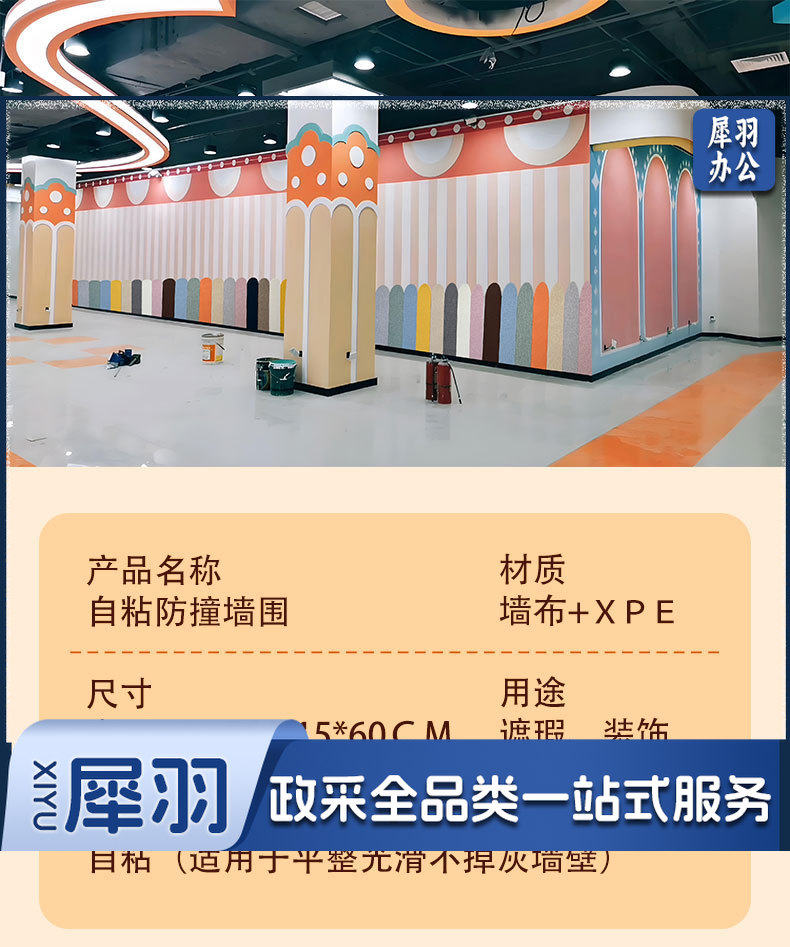 自粘儿童房防撞墙围幼儿园装饰过道客厅墙裙贴炕围保暖贴单片(60cmX15cm)14种颜色自选下单备注