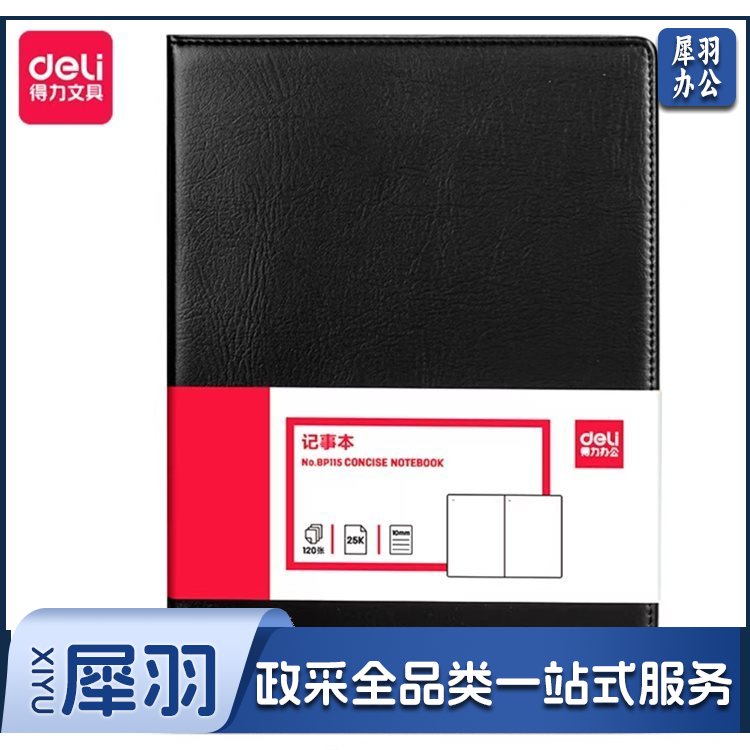 得力(deli)25K120张大号商务经典皮面本办公用品 会议记事本日记本笔记本子文具 黑 BP115
