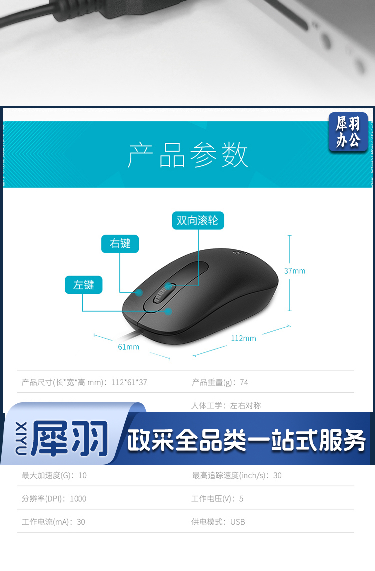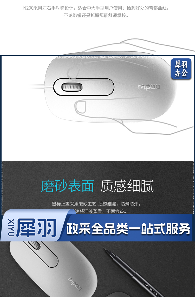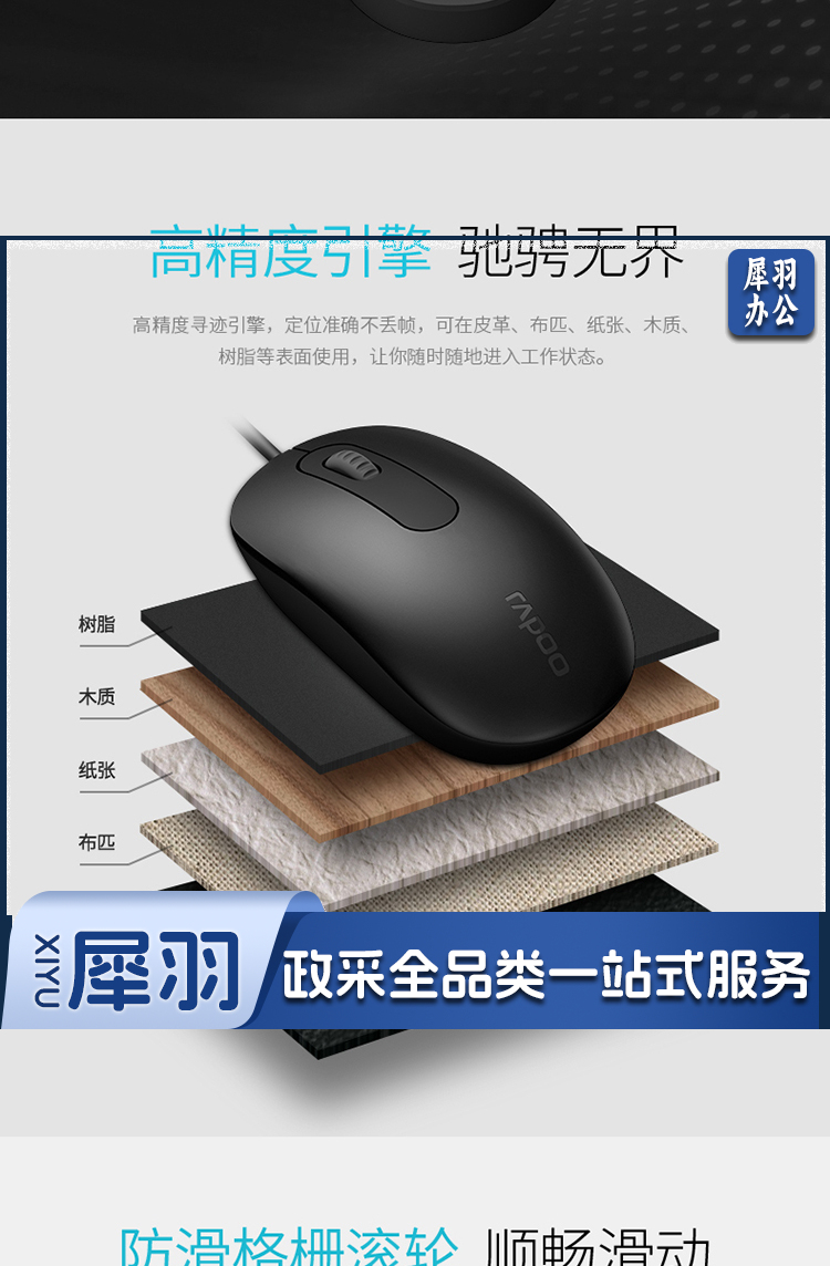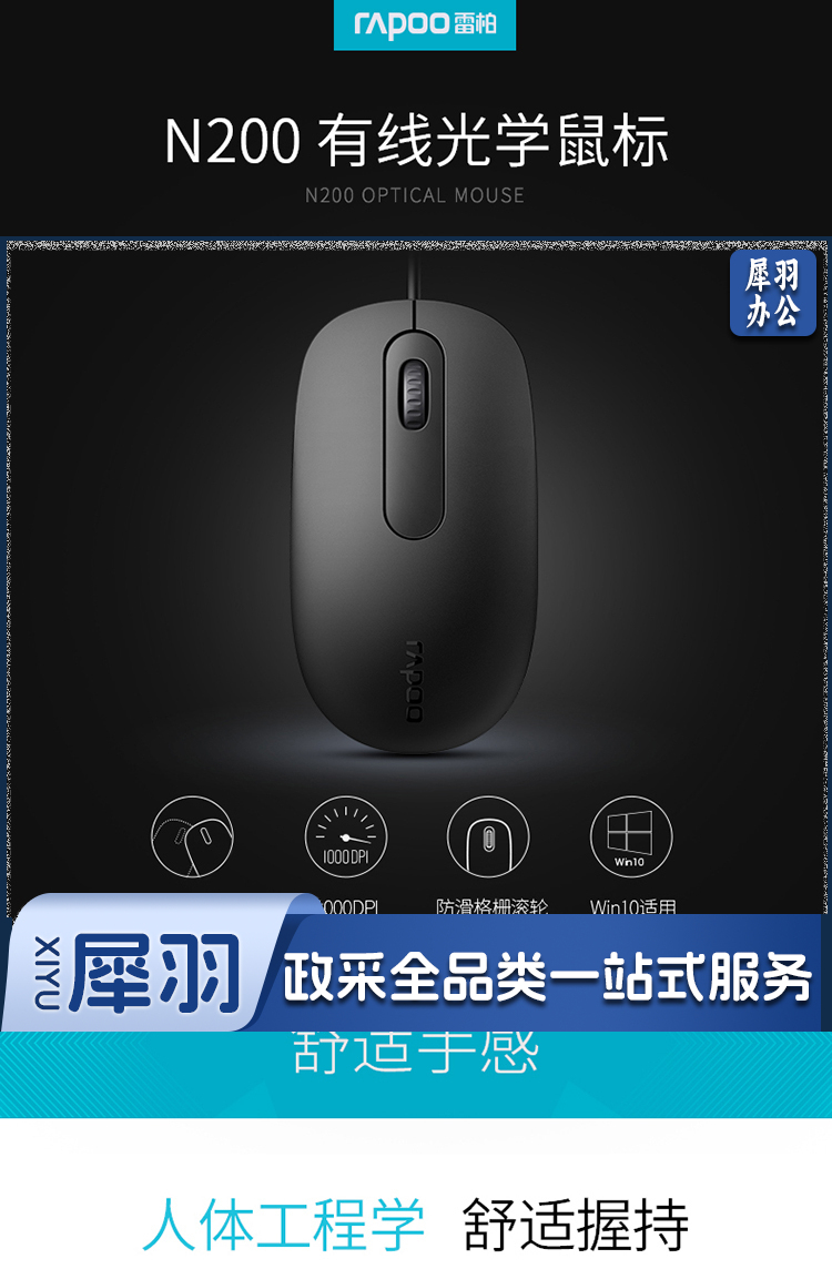 雷柏/RAPOO N200 有线鼠标 黑 单位:个