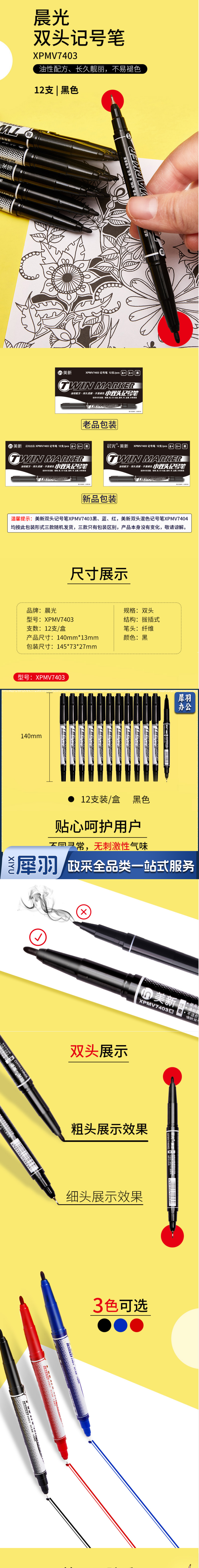 晨光记号笔 黑色双头细杆记号笔 重点标记记号笔 12支/盒XPMV7403 黑色记号笔单支装(黑)