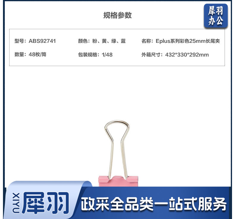 晨光 ABS92741 25mm彩色长尾夹 48个/筒