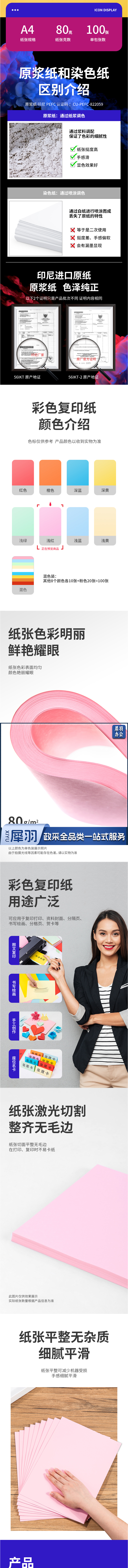 得力 浅红色打印纸 a4 80g彩色卡纸折纸手工纸 100张./包