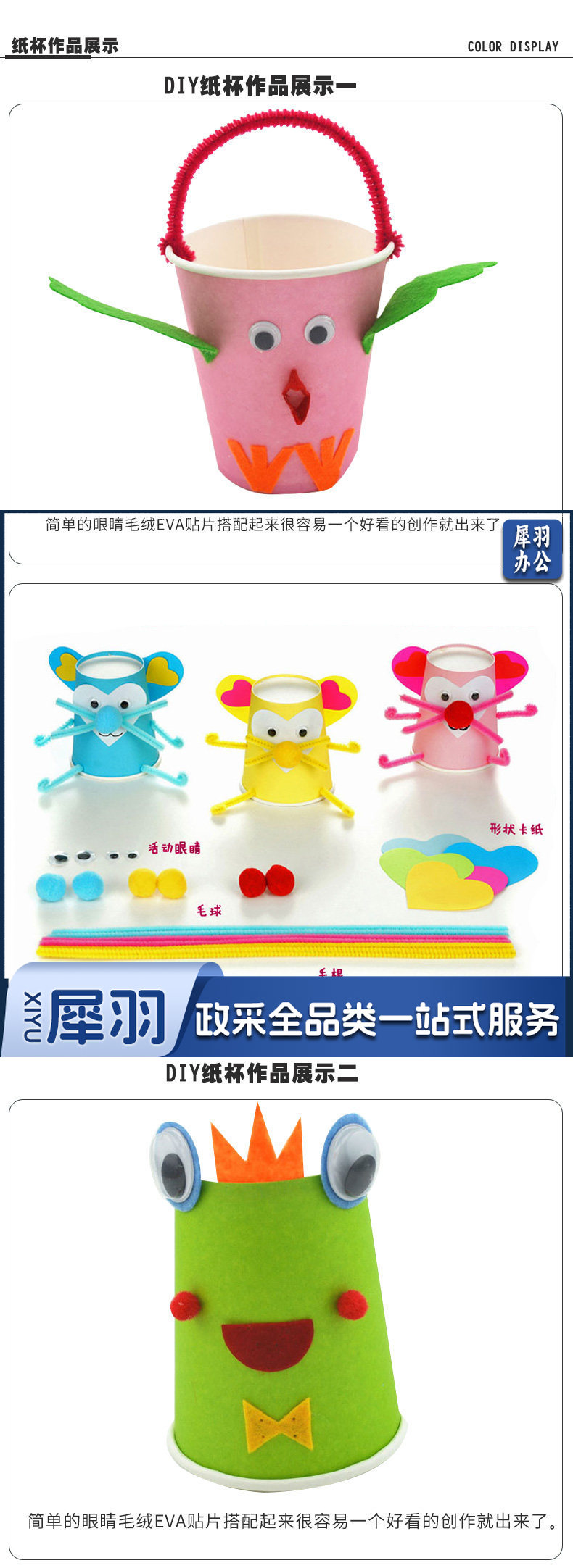 幼儿园早教白色彩色 纸杯 创意美术幼儿童diy制作材h 彩色纸杯(颜色随机100只装)
