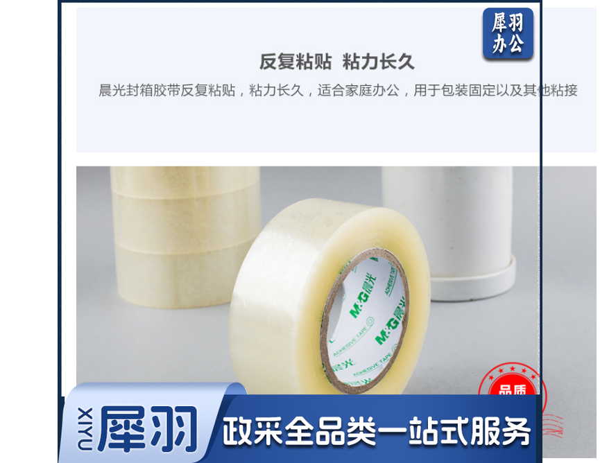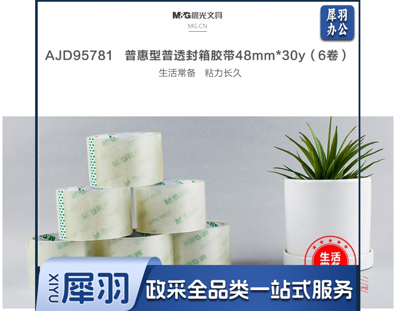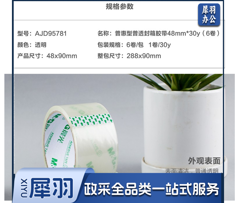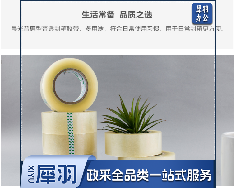 晨光(M&G)AJD95781普惠普透不易断裂封箱胶带打包胶带 24筒/箱 48mm*30y6卷/筒