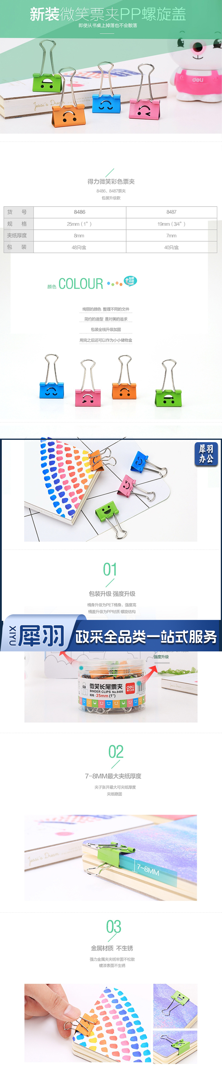 得力/deli 8487 微笑长尾票夹(单位:筒) 彩色