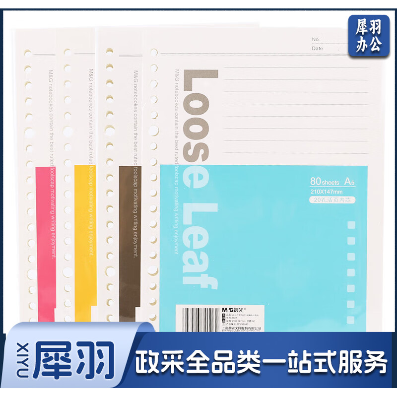 晨光A5活页芯20孔经典办公80页APY9B045 5本装