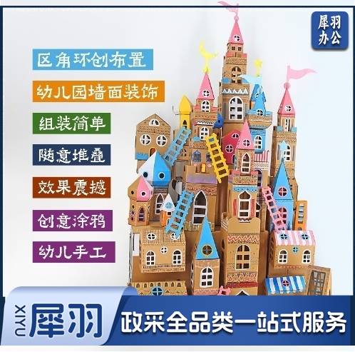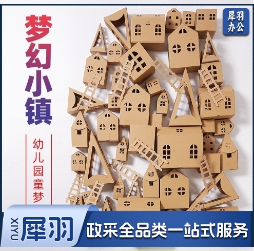 梦幻小镇幼儿园环创建构材料区角搭建环境手工制作diy小房子纸盒方形小镇房子大号此商品就为组装环创装饰品(其他款式价格咨询客服)