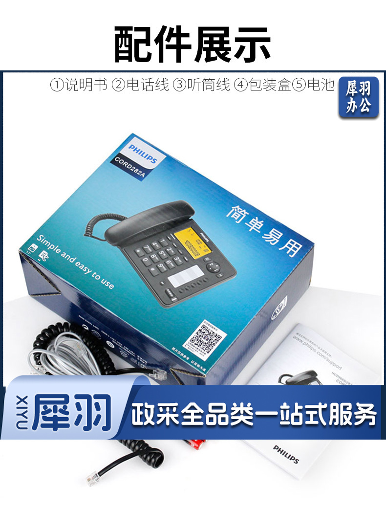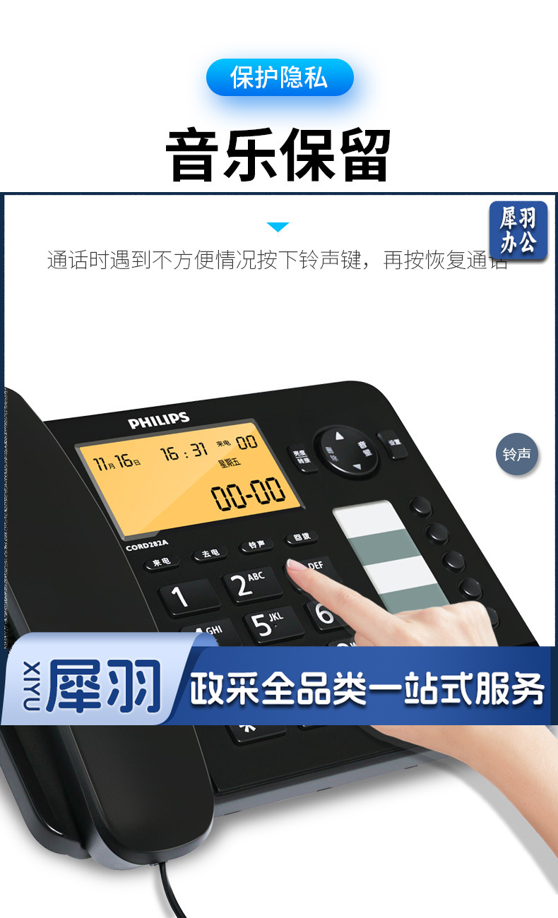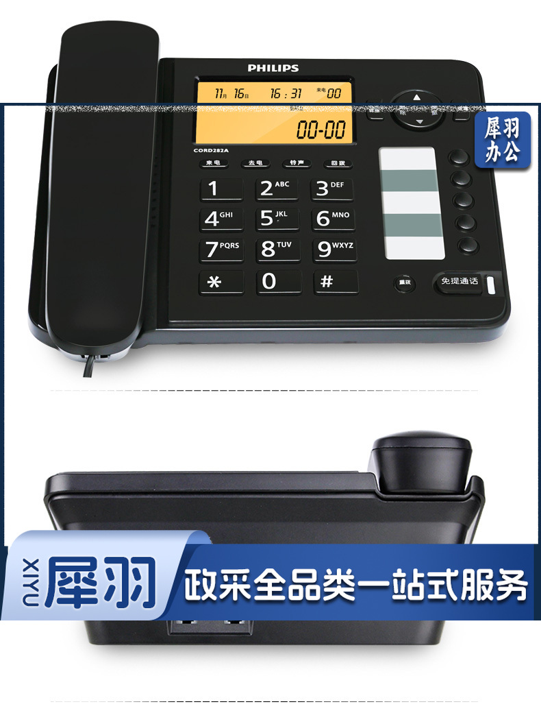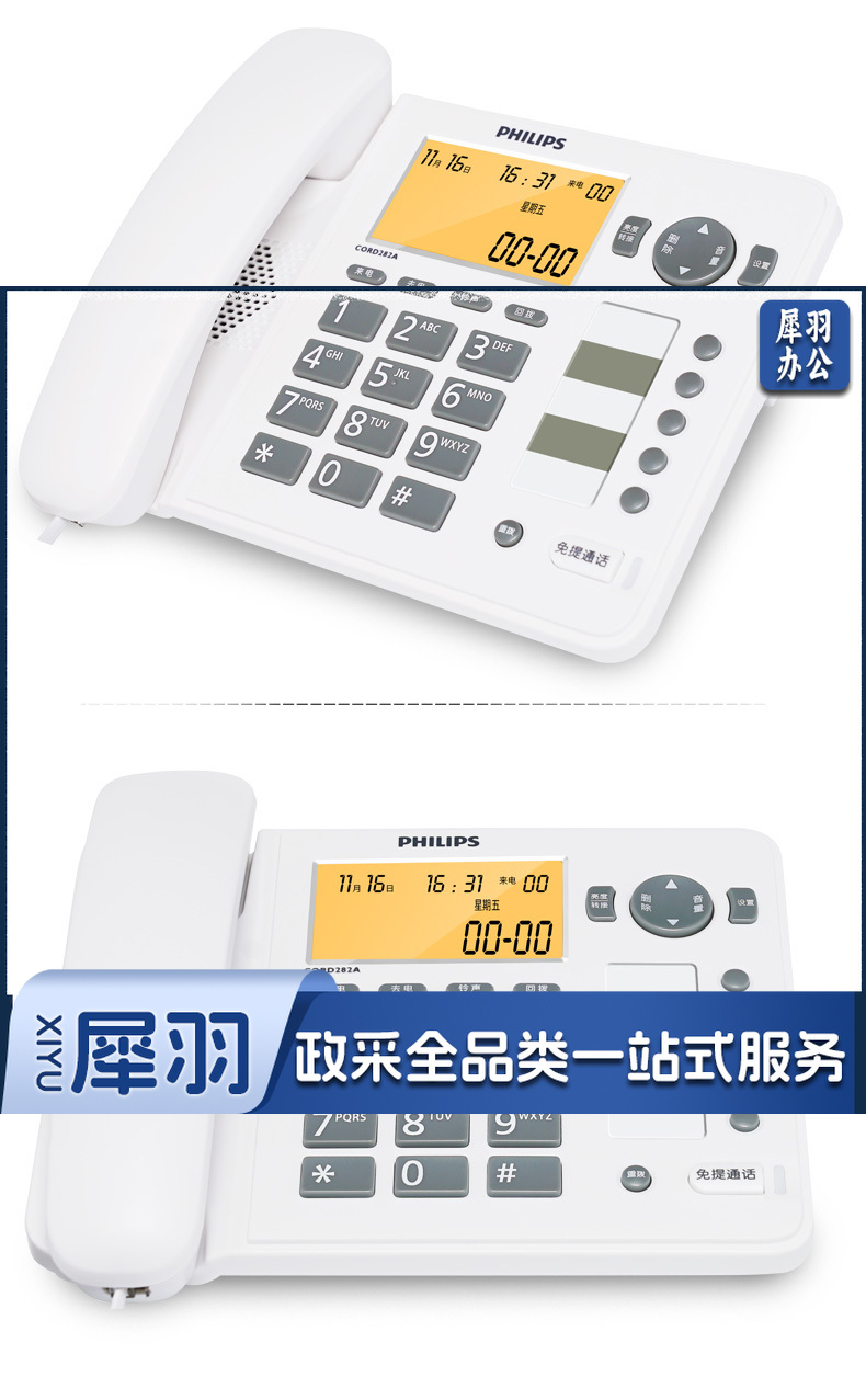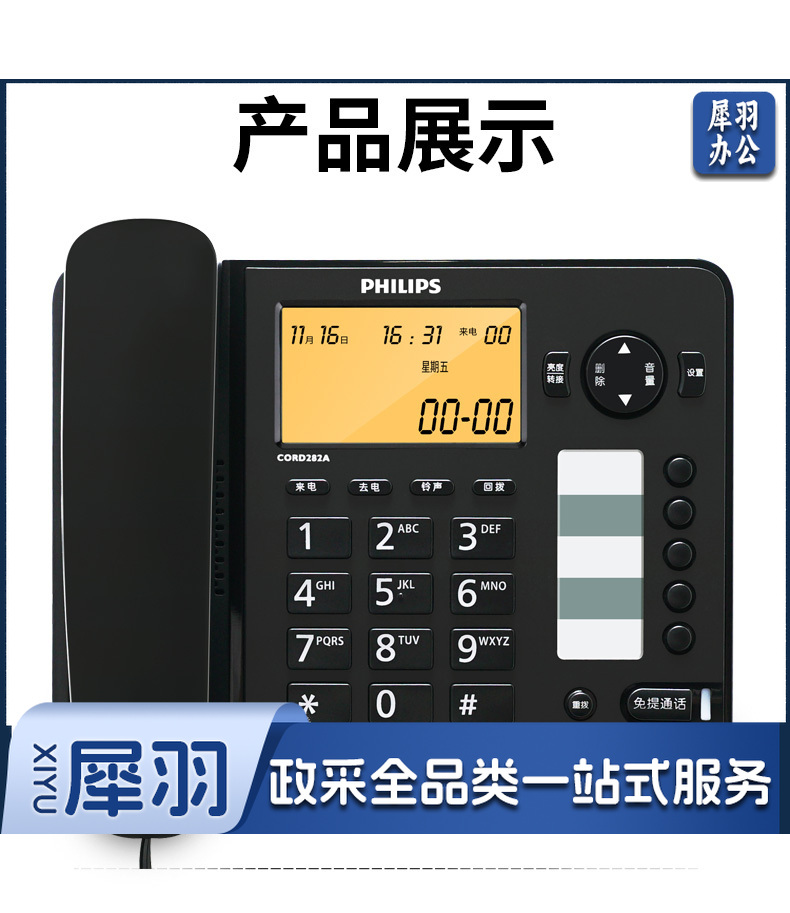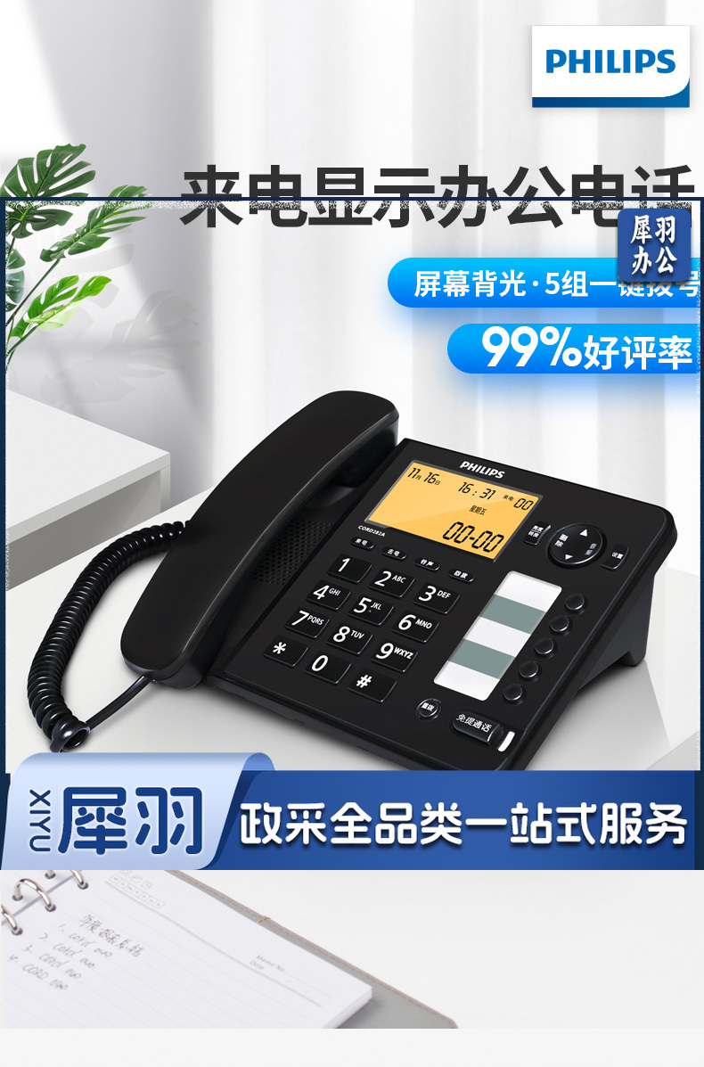 飞利浦(PHILIPS)电话机座机 屏幕橙色背光 CORD282A黑色