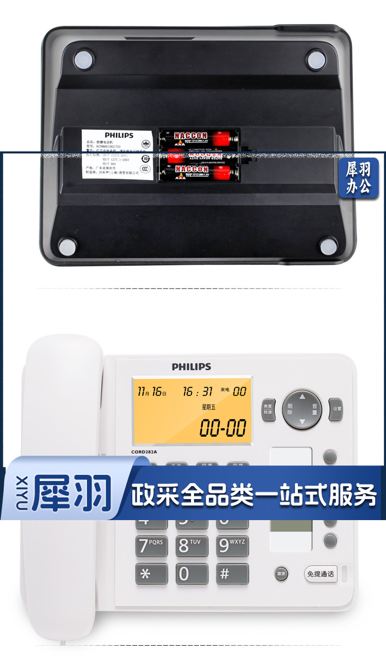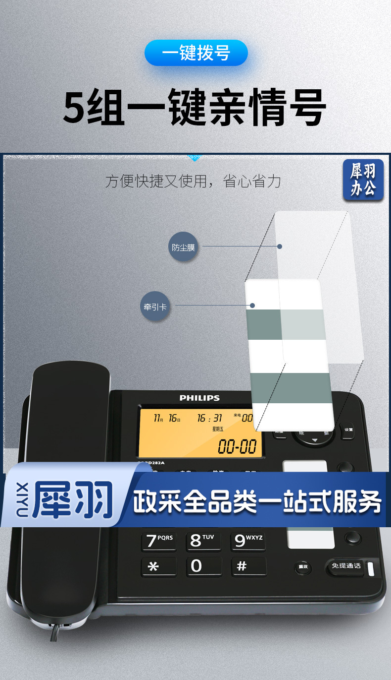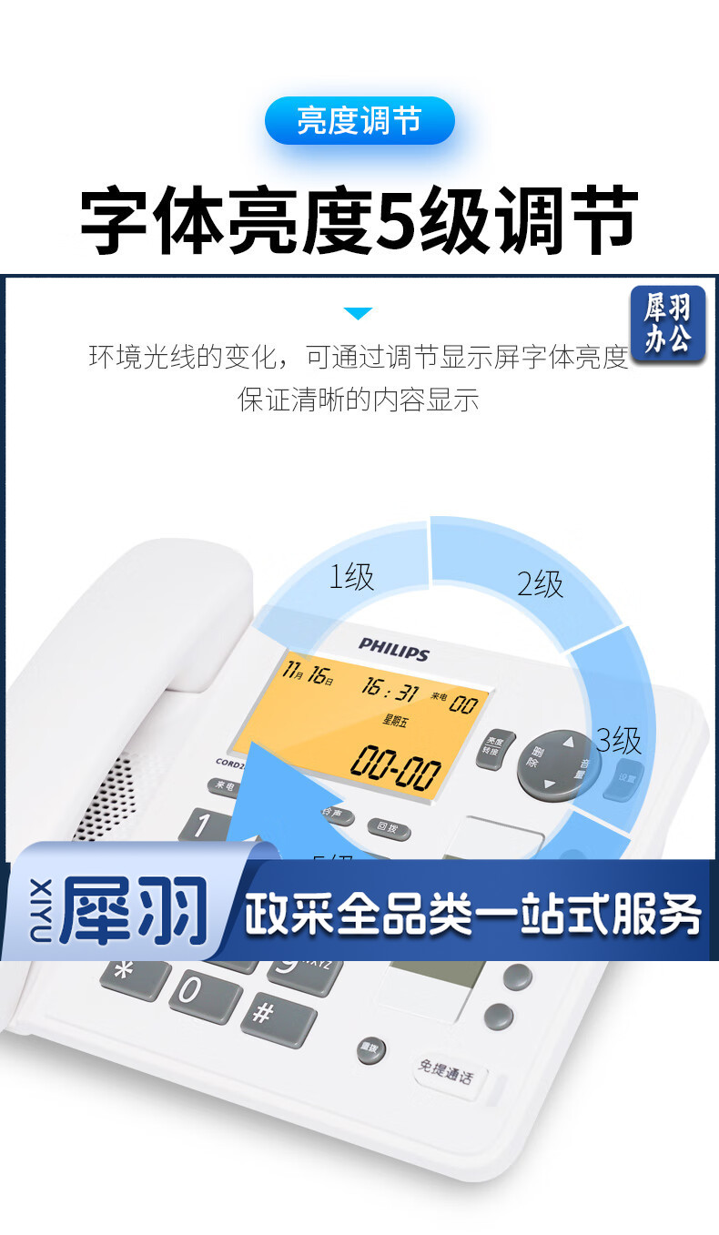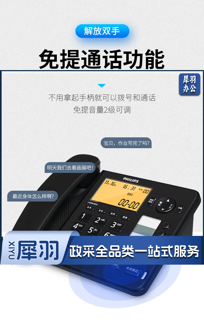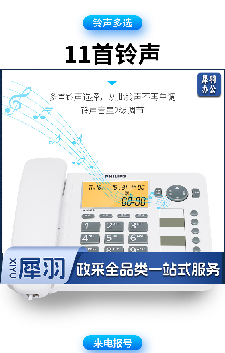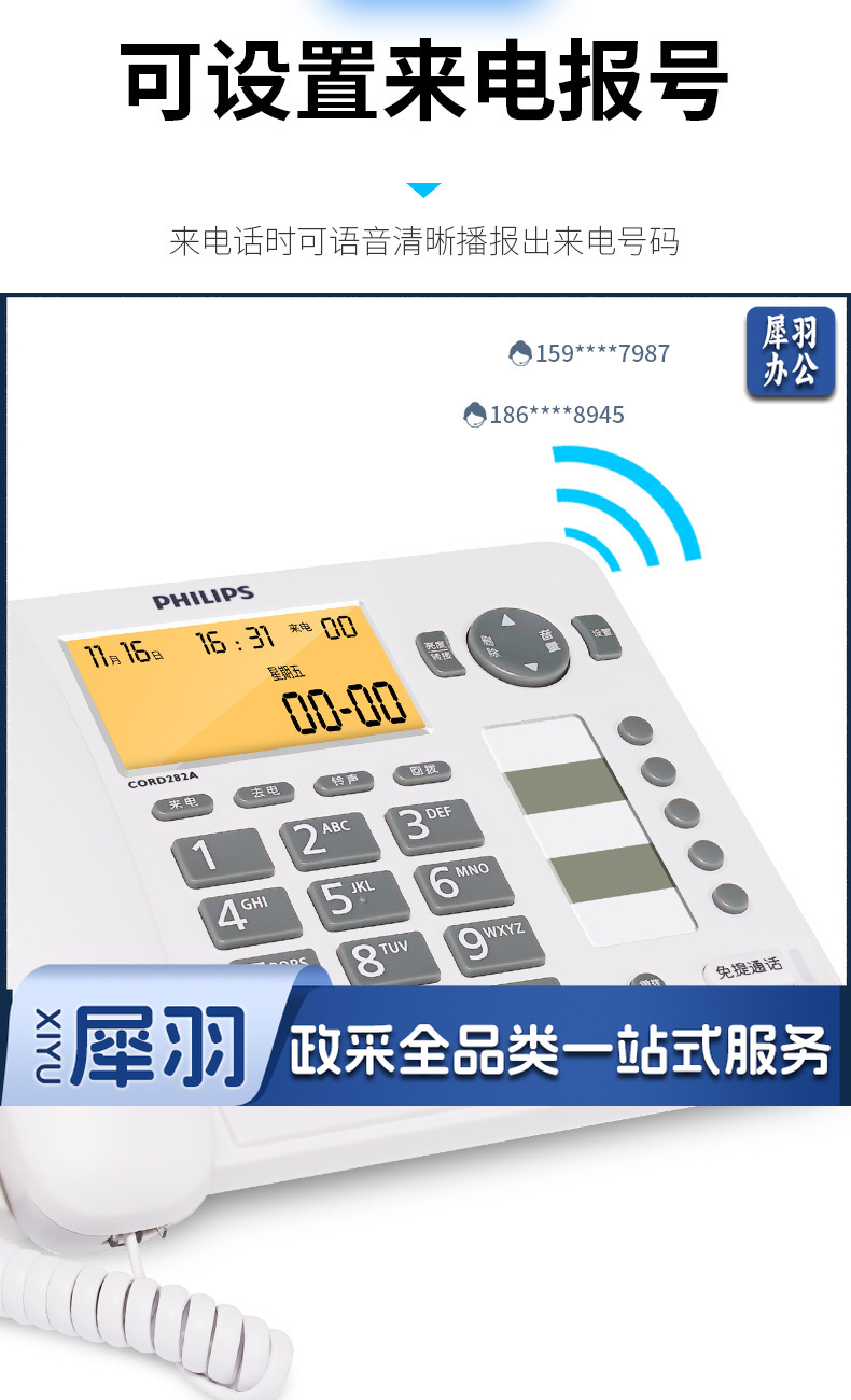 飞利浦(PHILIPS)电话机座机 屏幕橙色背光 CORD282A黑色