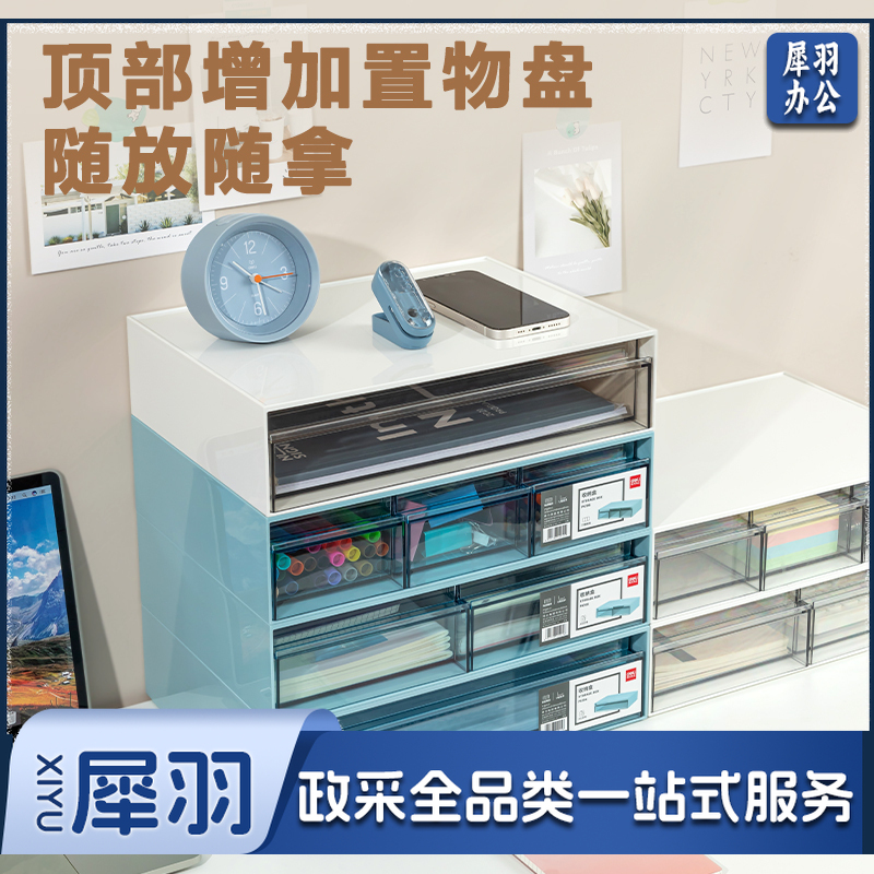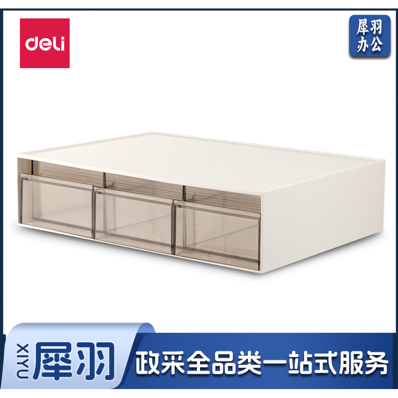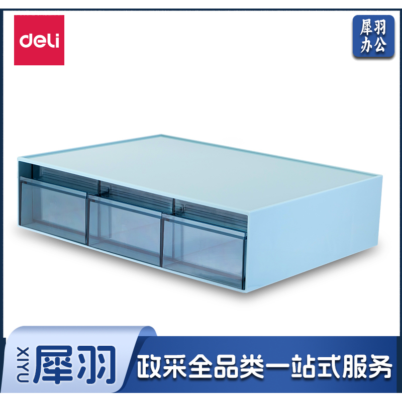 得力PK106组合抽屉收纳盒(三格) 蓝白随机(单位:个)231019122825