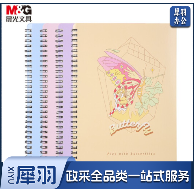 晨光(M&G)文具A5/60张螺旋双线圈本 记事笔记本子 学生本日记本 蝶影系列横线本手账本办公本 4本装APY7BZ50