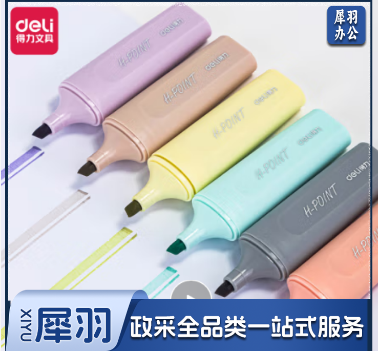 得力(deli)薄雾系扁杆柔彩荧光笔重点标记笔 手账笔彩绘笔可用水性记号笔 6支/盒 S616