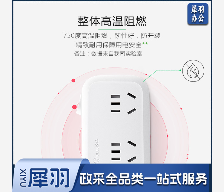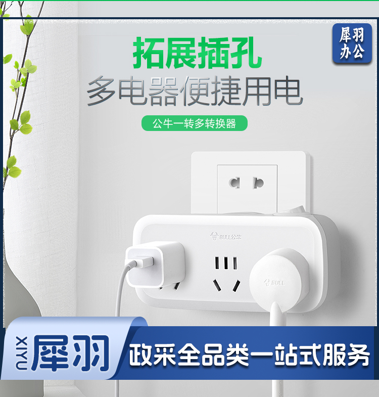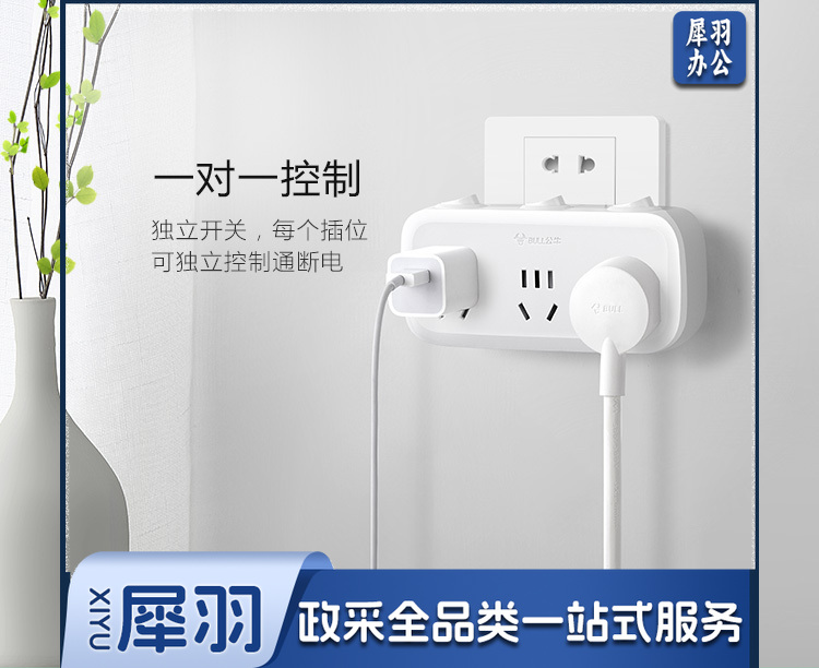 公牛(BULL)插排 多功能插座/一转多保护门/ 扩展转换器 /适用于卧室、厨房 GN-9323 分控开关一转二