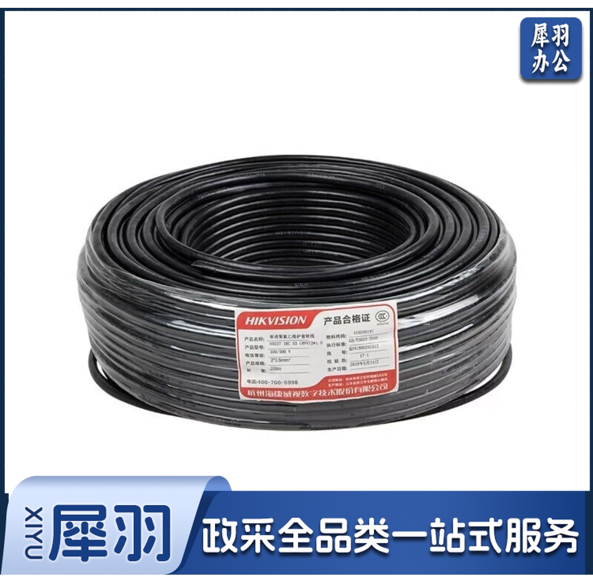 海康威视 监控视频线同轴模拟视频线 综合线BNC接头远距离传输300米500米 RVV2*1.0 电源线 1米