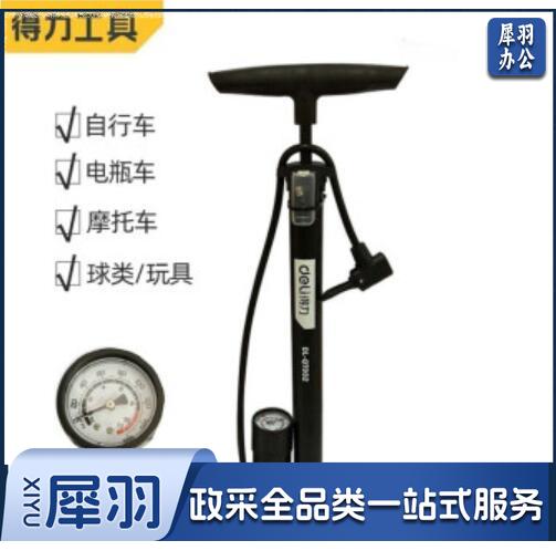 得力(deli)家用多功能手动打气筒 汽车自行车球类充气骑行装备配件便携式金属打气泵 DL-QT002 带气压表JDXC202302100629306