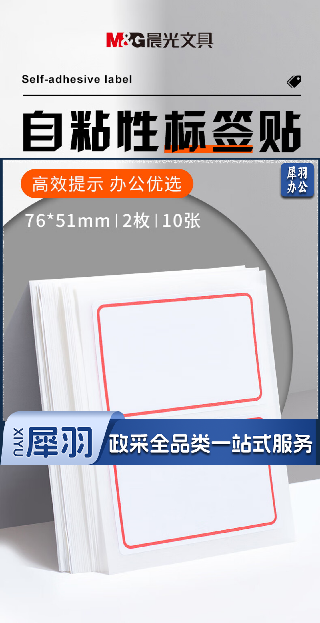 晨光(M&G)文具76*51mm/20枚红框自粘性标签贴纸