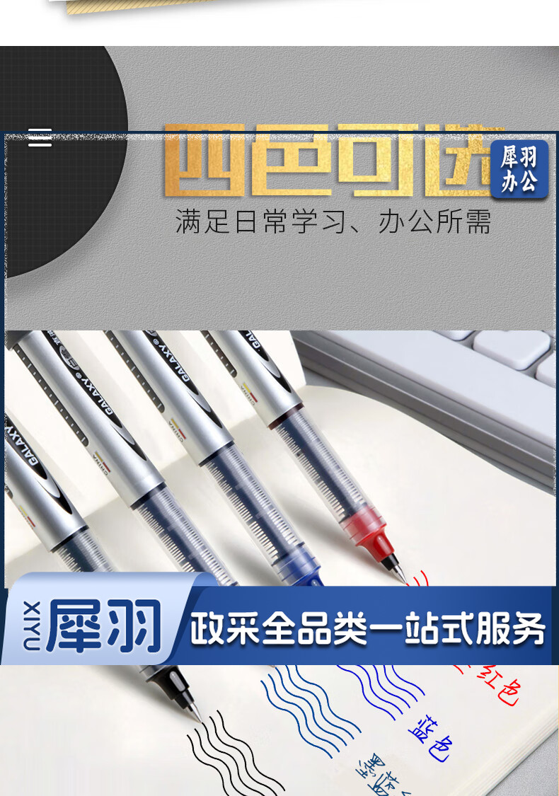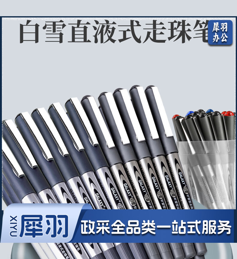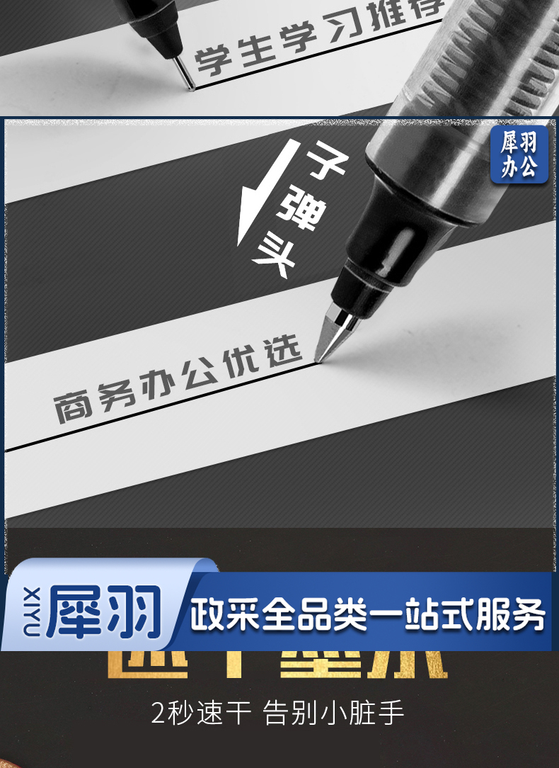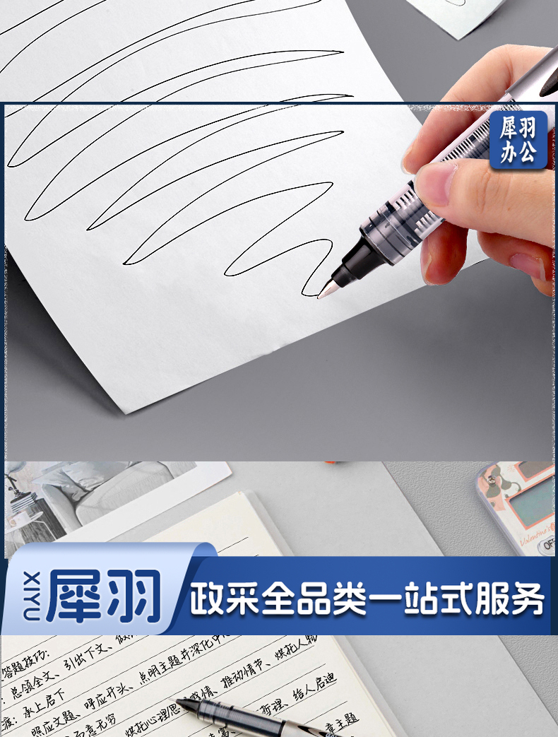 白雪(snowhite)PVR-155直液式走珠笔子弹型学生办公用中性笔签字笔考试专用笔0.5mm黑色12支/盒