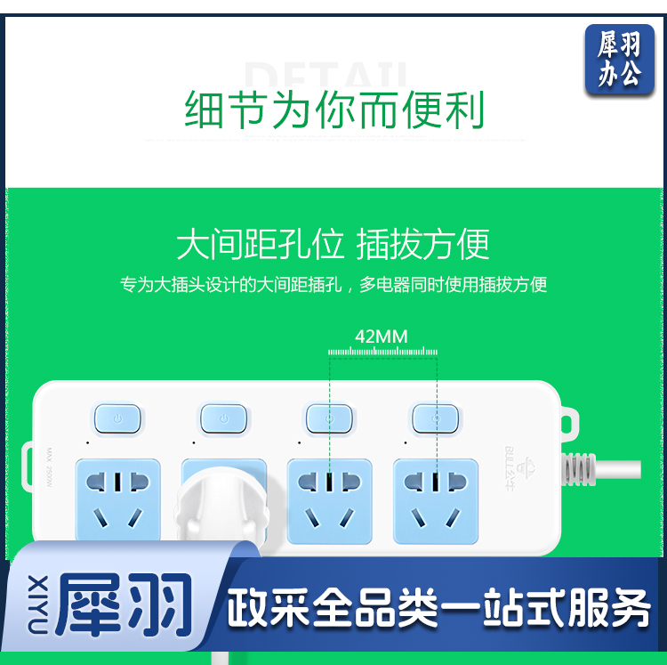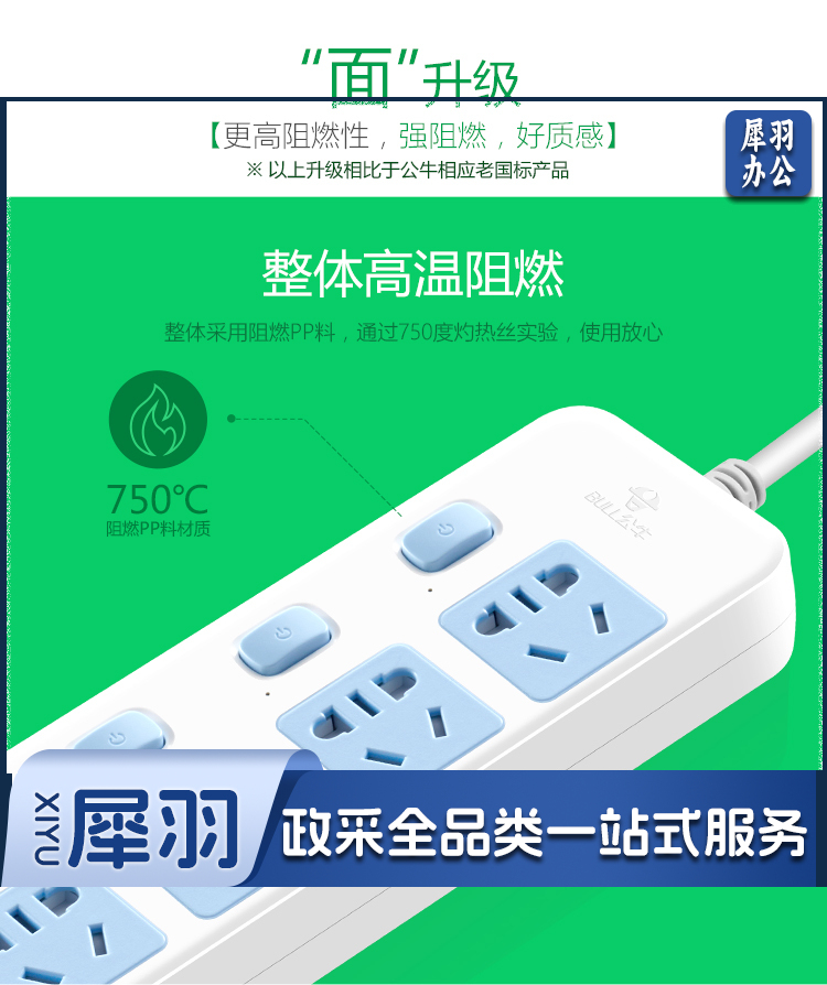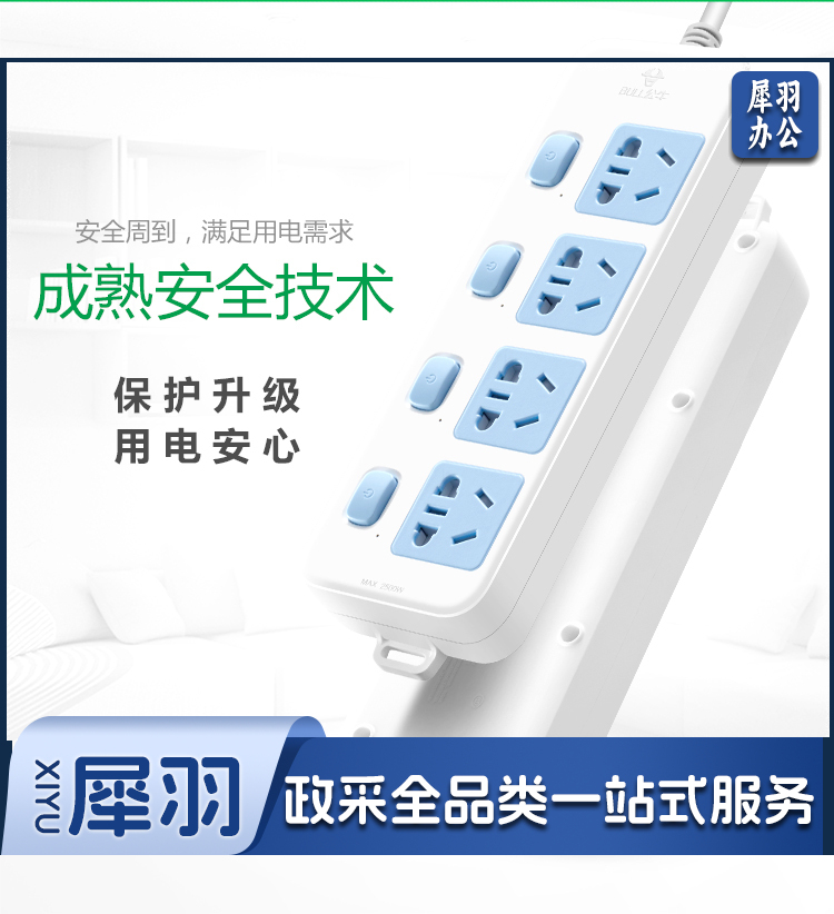 公牛(BULL)新国标插座/插线板/插排/排插/接线板/拖线板 4位分控全长1.8米 GN-315