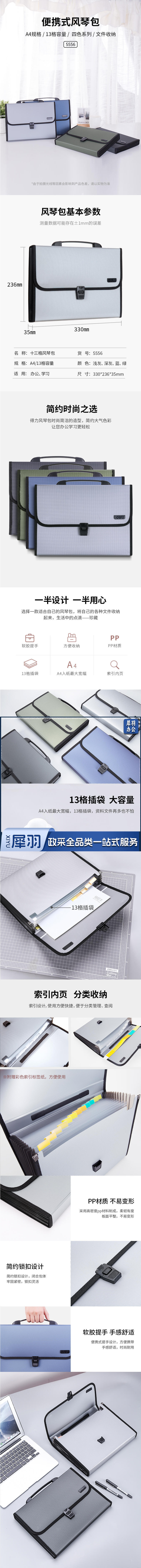 得力5556风琴包(灰色/蓝色) 文件包 手提袋 手提文件袋GDSM