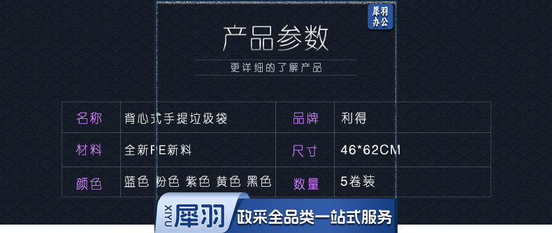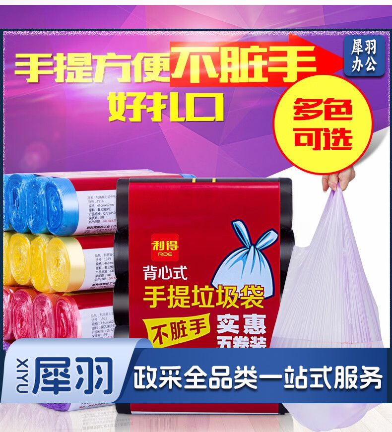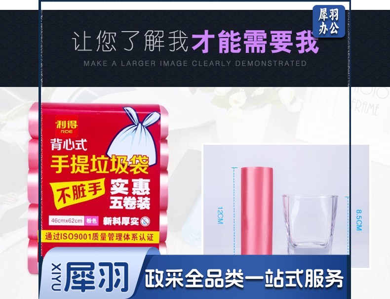 利得 垃圾袋家用加厚手提式 垃圾袋加厚塑料袋 46*62 蓝色5卷 100只