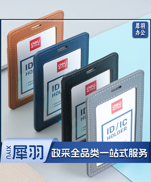 得力(deli)皮质证件卡套 竖式工作证胸牌员工工牌学生校园卡卡套 【黑色】2卡套+2挂绳