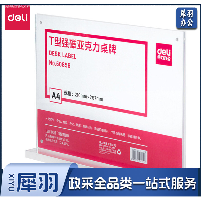 得力50856 T型桌牌 强磁亚克力台签展示牌 透明210*297mm(块)
