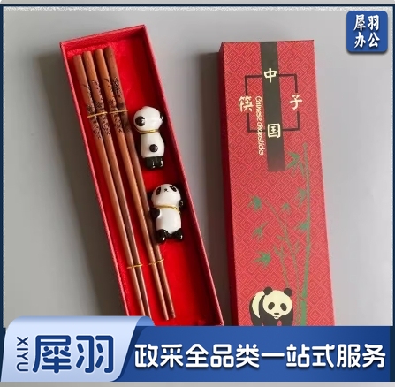 四川熊猫红木铁木筷子筷托礼盒套装餐具老外礼品中国风成都纪念品