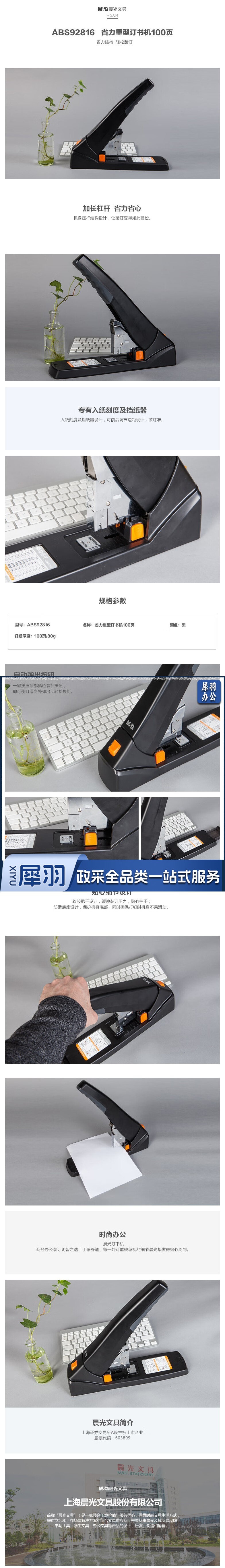 晨光(M&G)ABS92816省力重型订书机订书器 可订100页