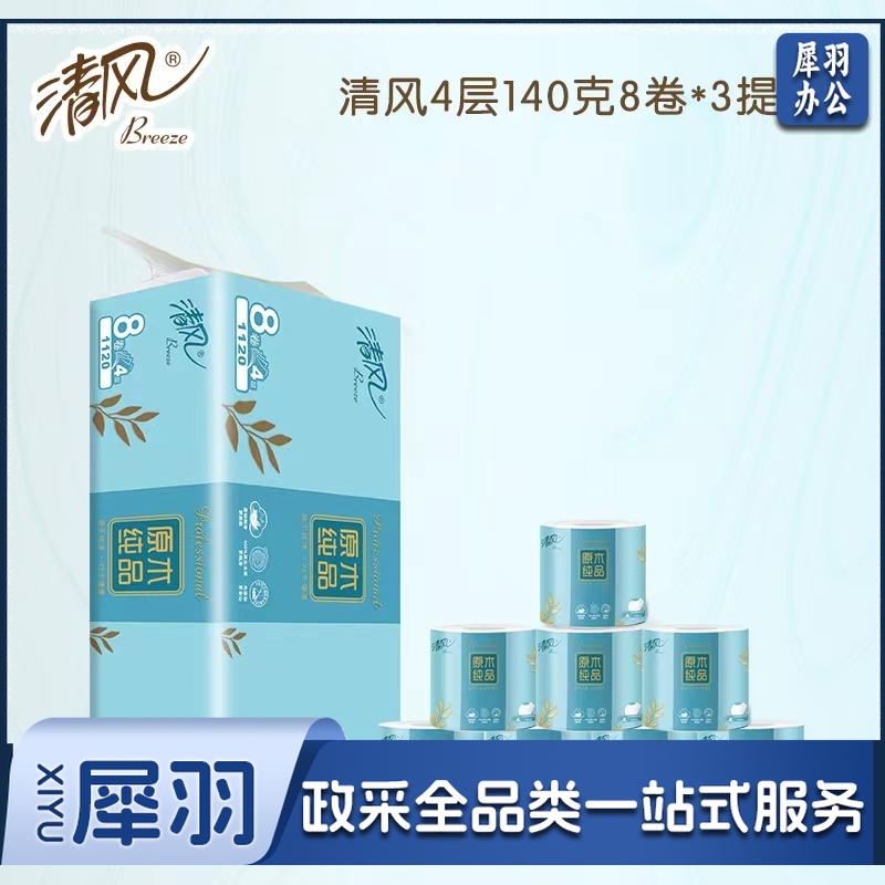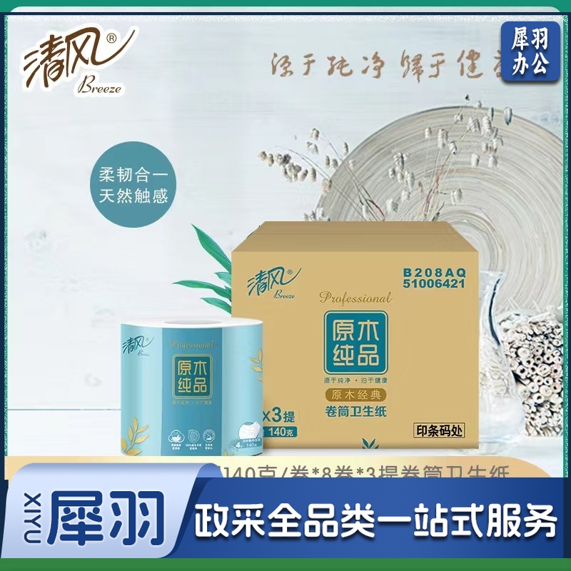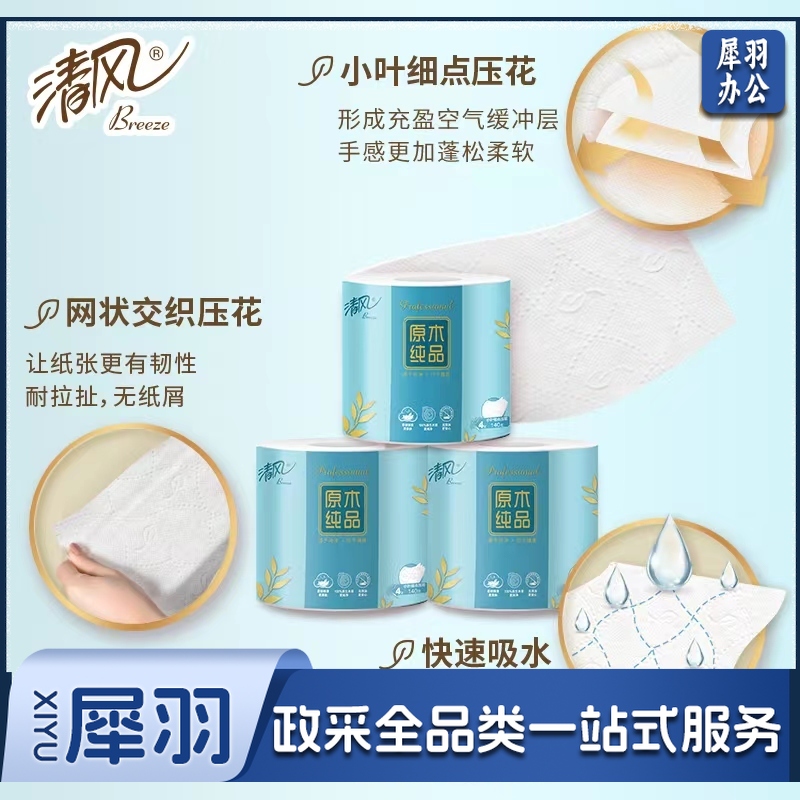 清风原木纯品4层小叶细点压花140g卷筒卫生纸