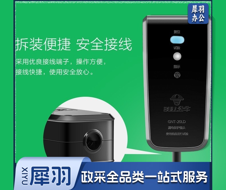 公牛漏电保护插头防漏电插排防触电漏保带开关10A/16A热水器空调大功率接线浴室卫生间漏电保护器插座 GNT-20LD 16A自接线大功率款