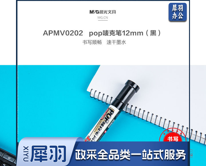 晨光记号笔POP记号笔唛克笔蓝色记号笔单支装记号笔APMV0202(蓝)12支/盒