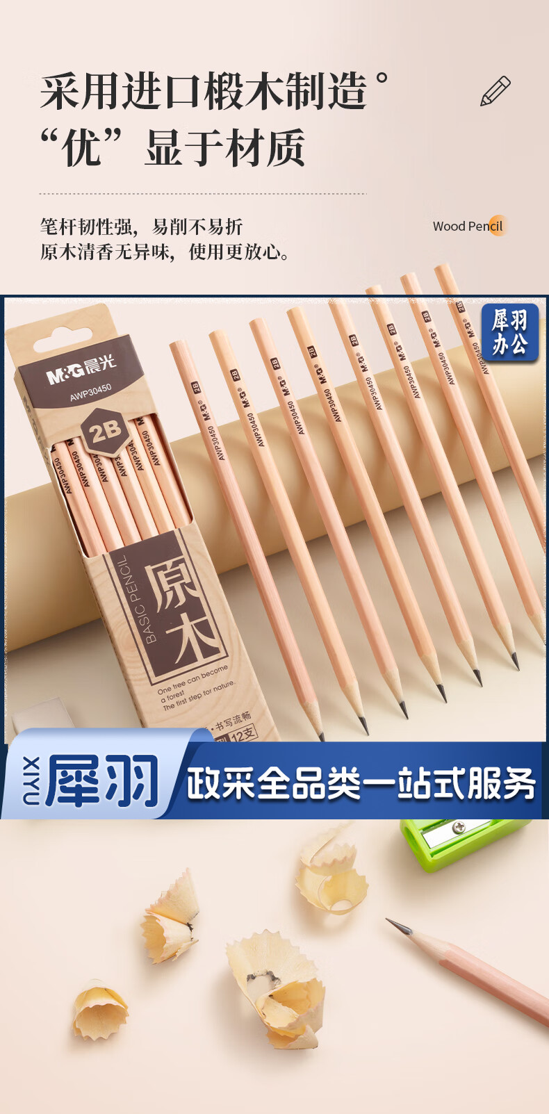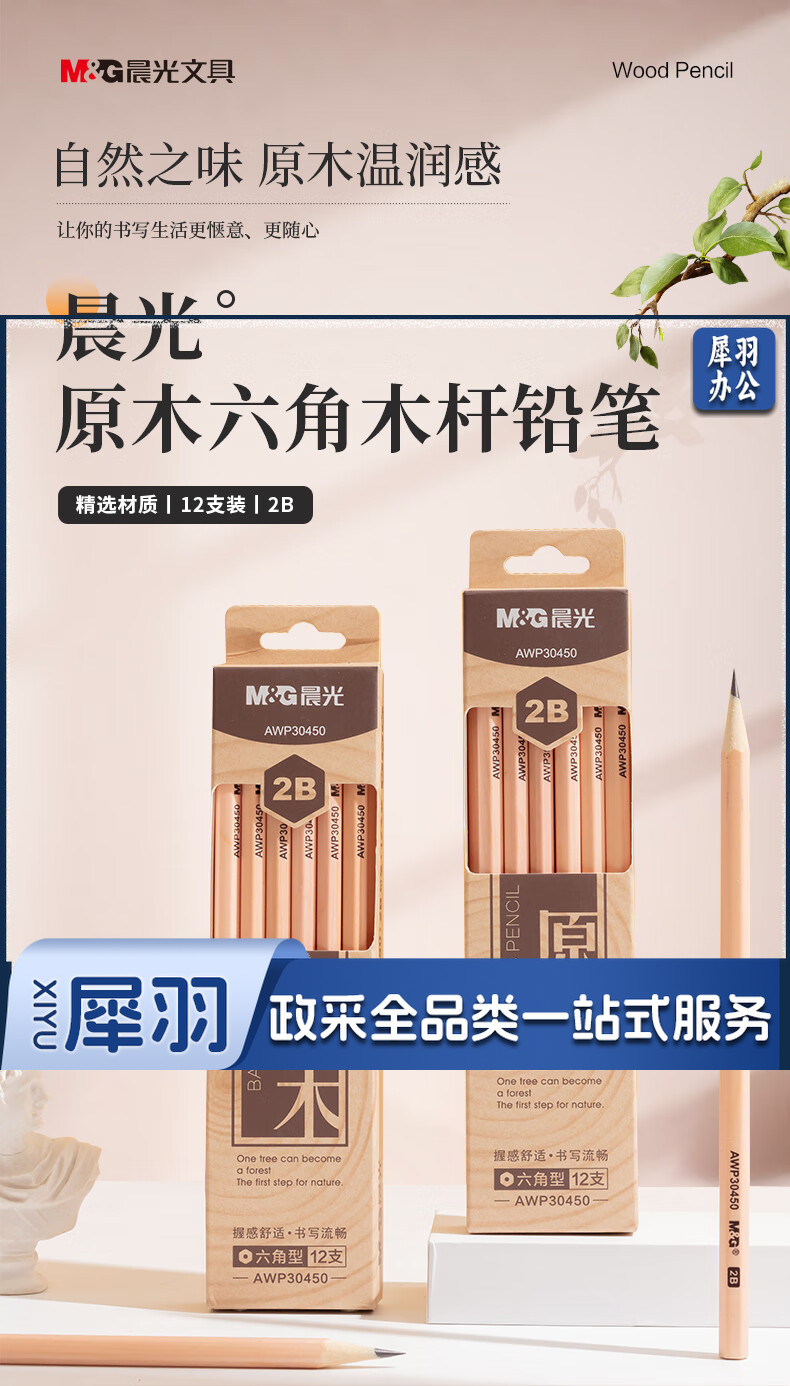 晨光(M&G)AWP30450 2B铅笔12支 原木六角木杆铅笔
