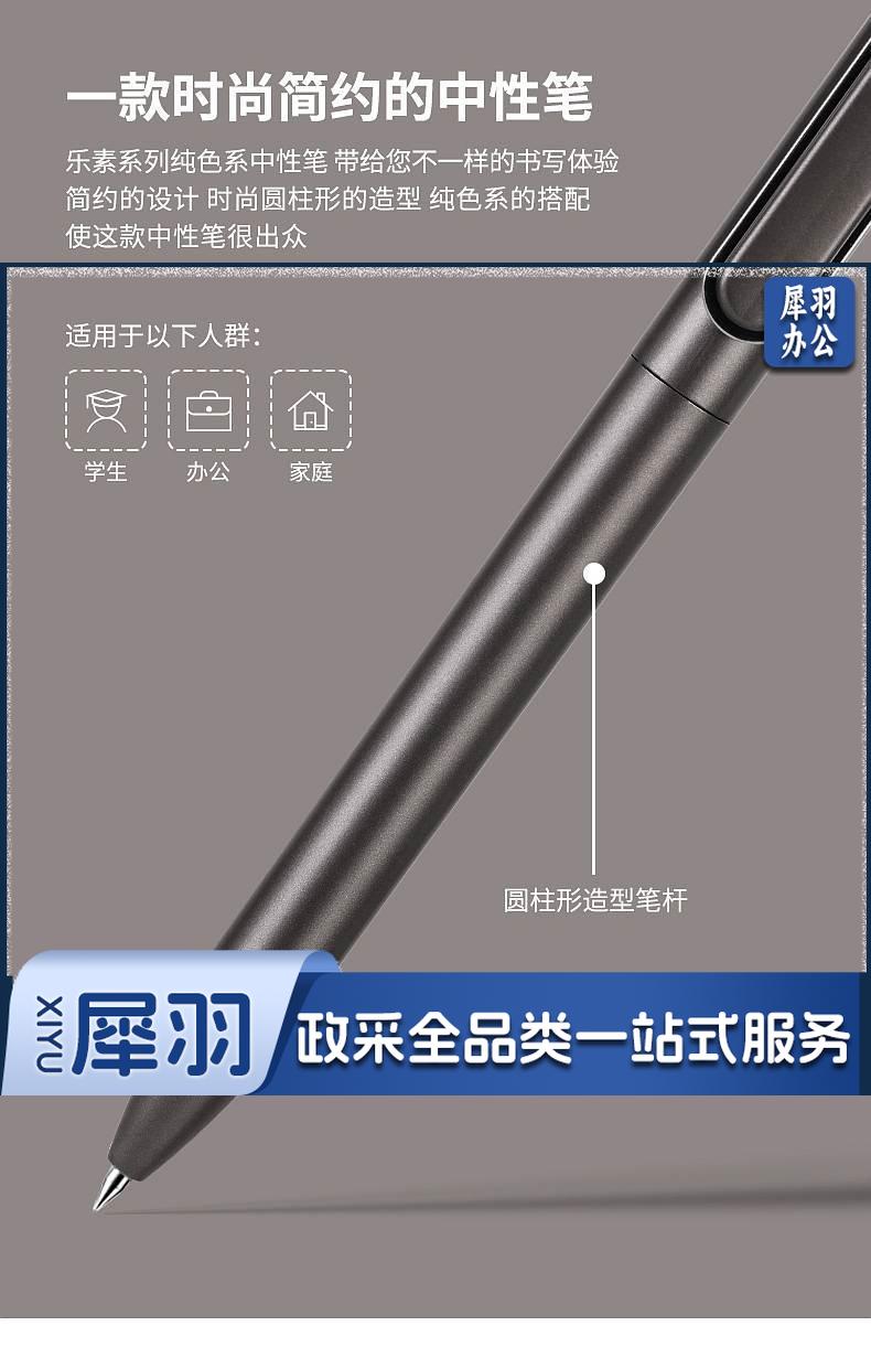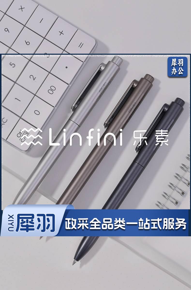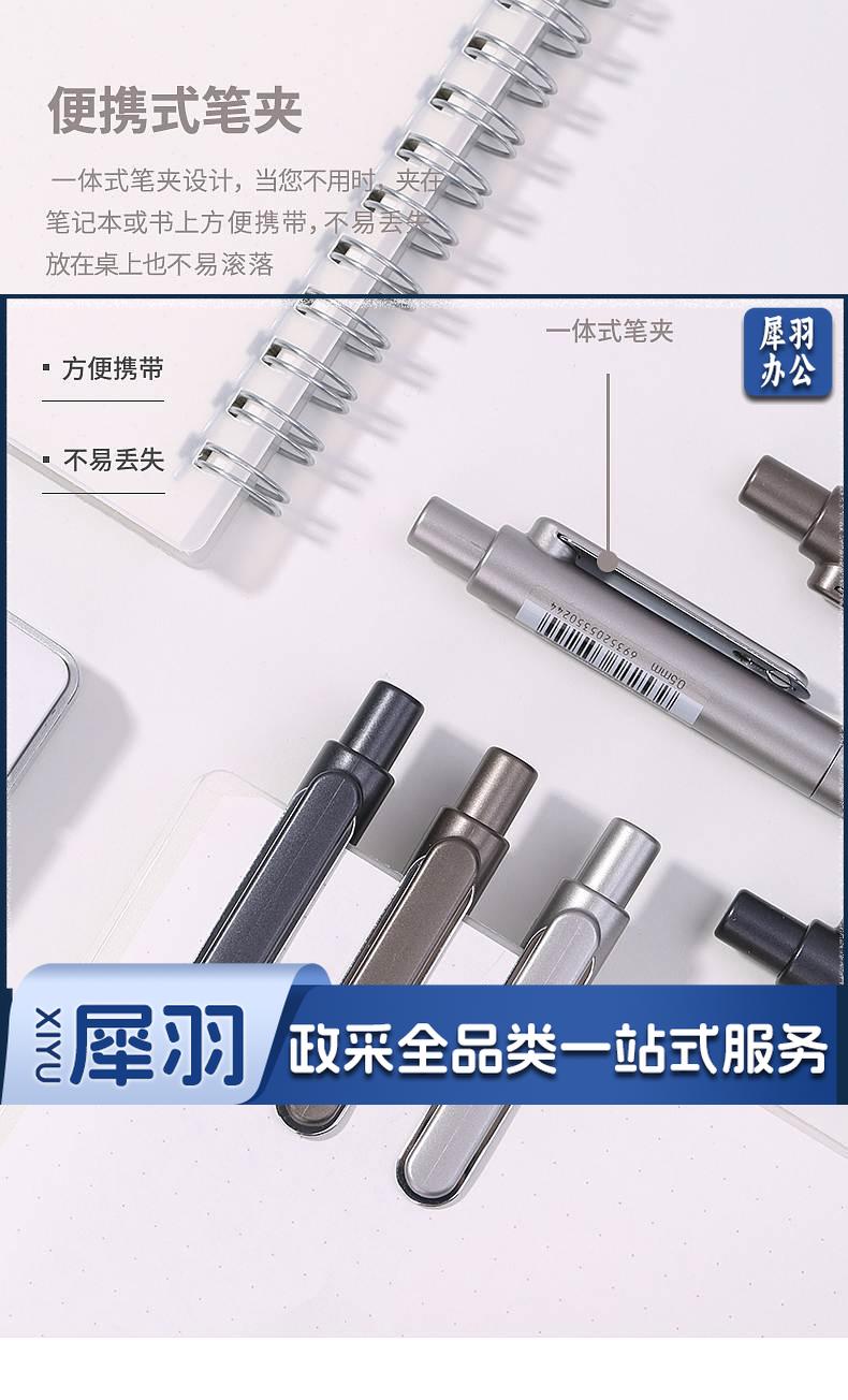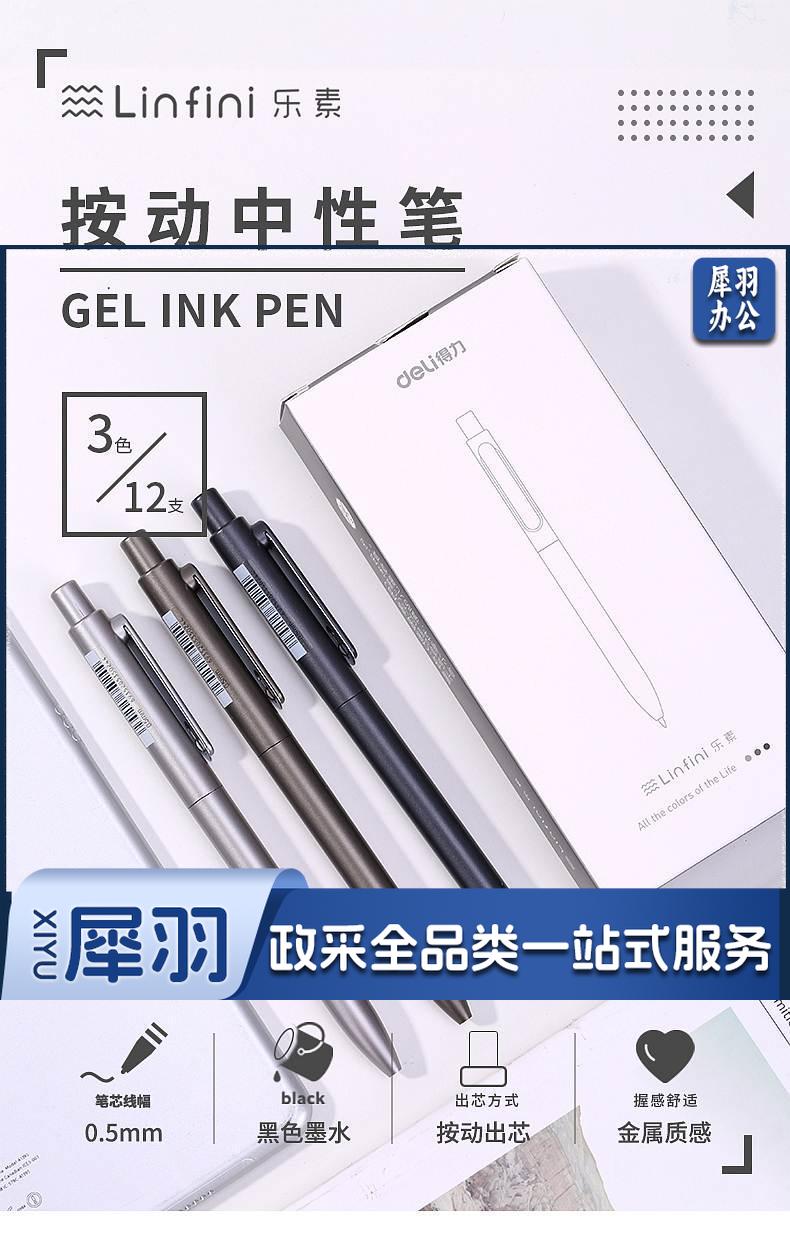 1100703894EA 得力 A12 乐素金属按压式中性笔 0.5mm子弹头 混色笔杆 笔芯黑色 12支/盒