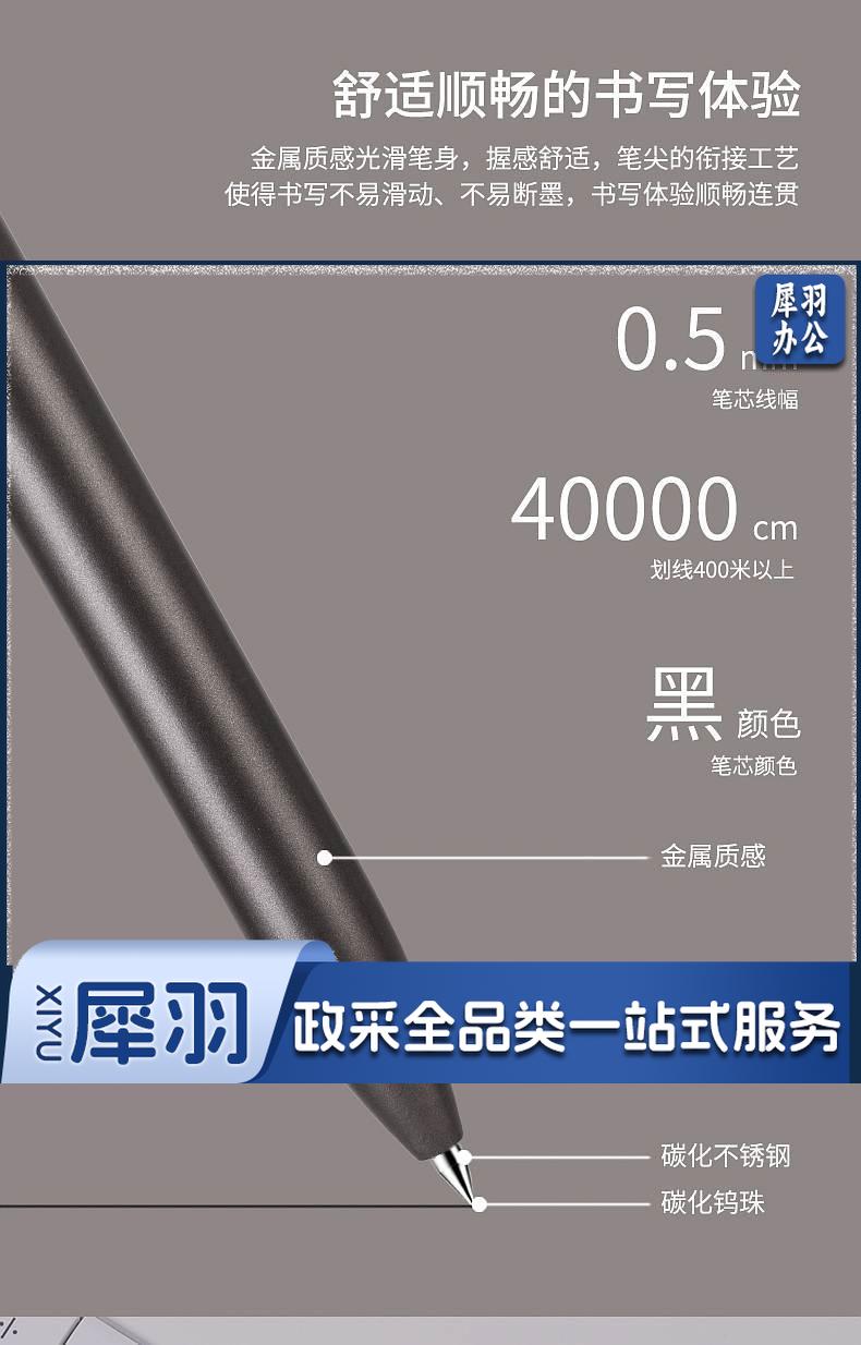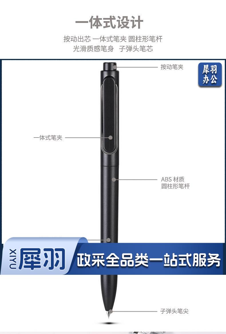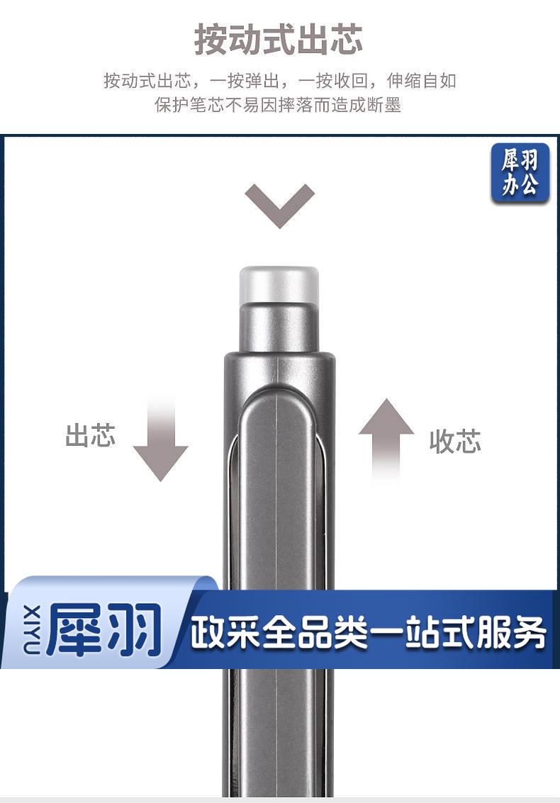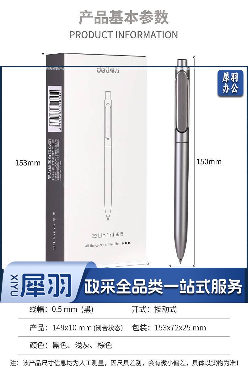 1100703894EA 得力 A12 乐素金属按压式中性笔 0.5mm子弹头 混色笔杆 笔芯黑色 12支/盒