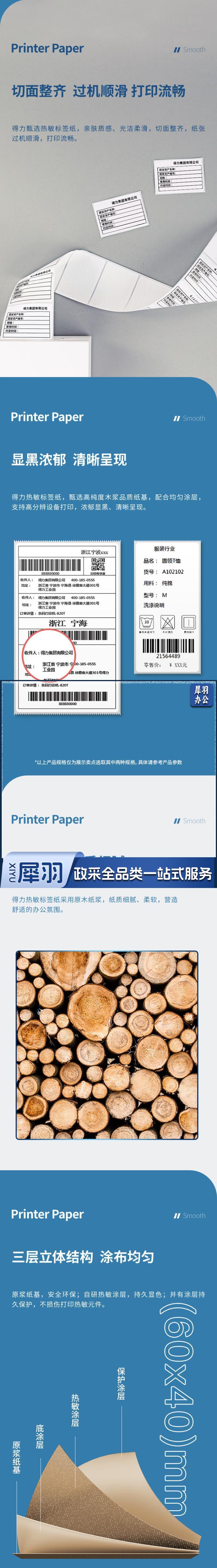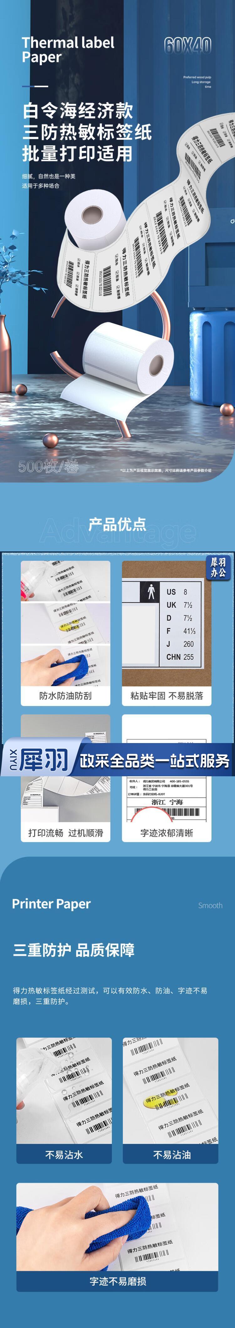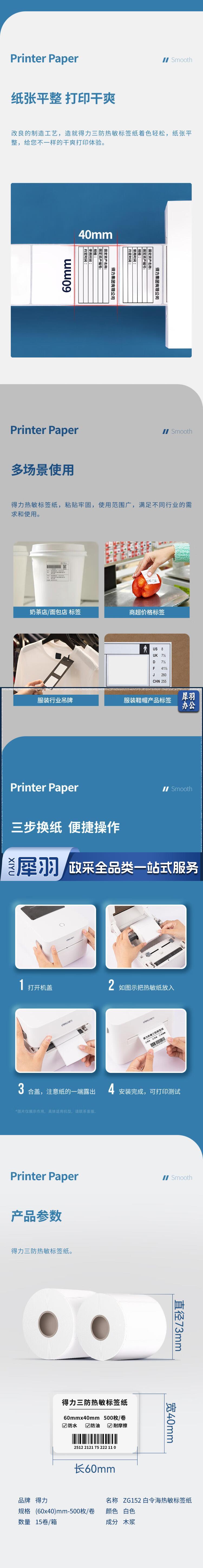 得力(deli)白令海经济型60*40mm 500张*15卷 三防热敏标签纸 标签条码纸 不干胶标签纸 ZG152
