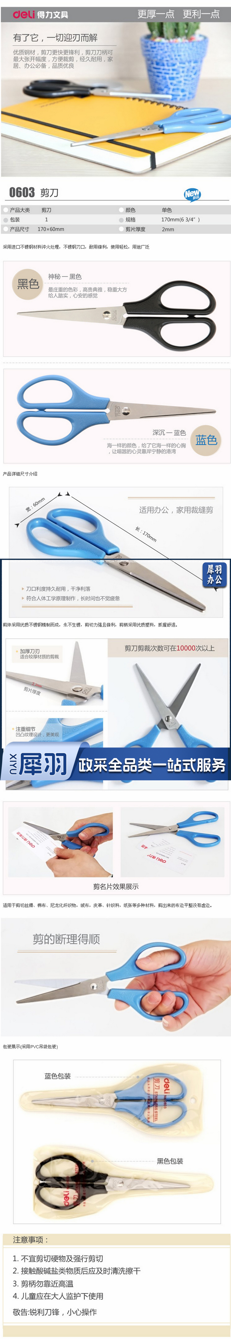 1100022219P00 得力 0603 剪刀 170mm 随机色 12把/盒