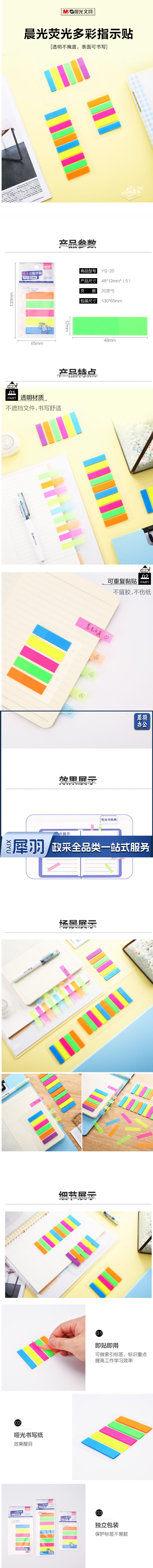 晨光 YS-20 五分条荧光便利贴(20页/条/5条装)