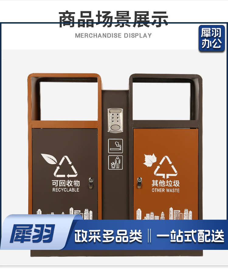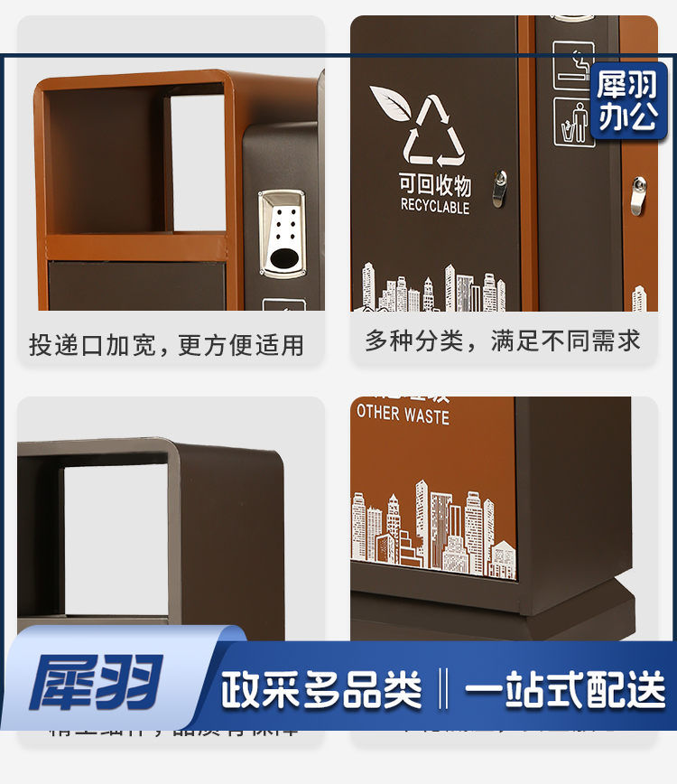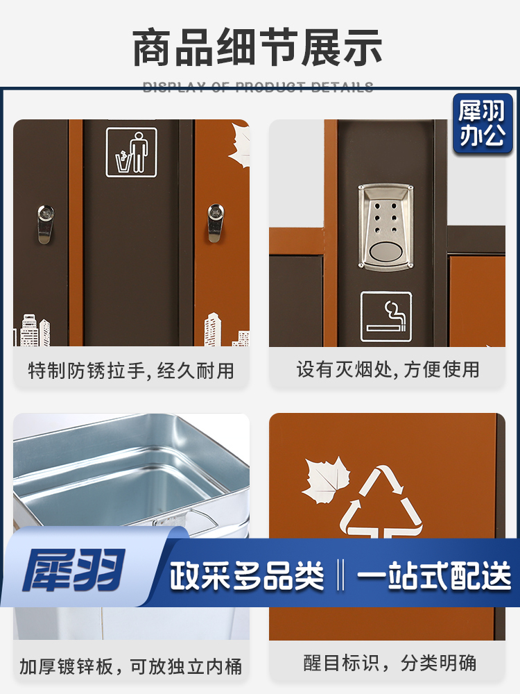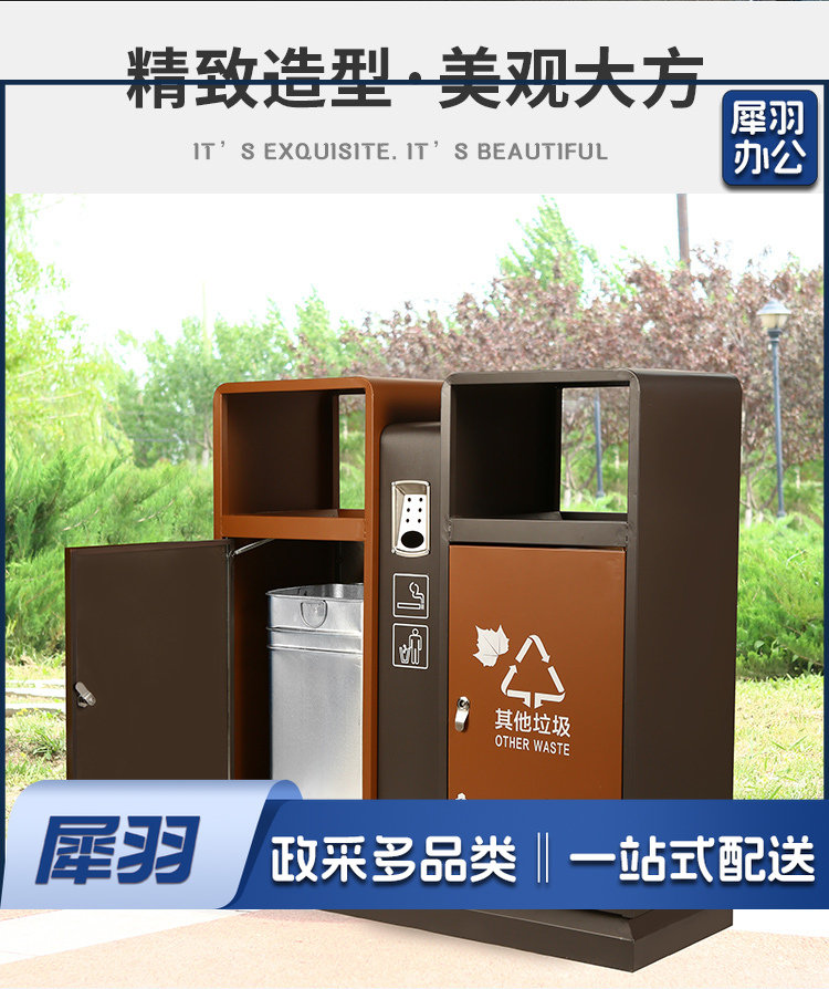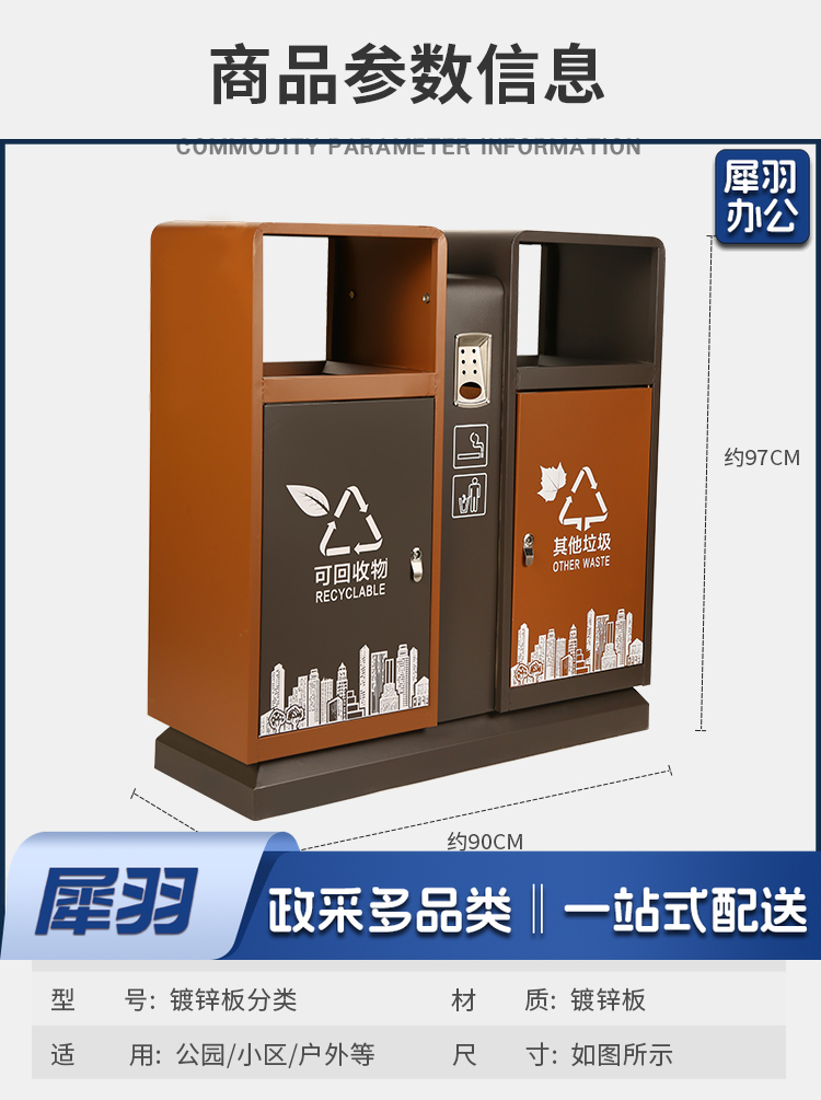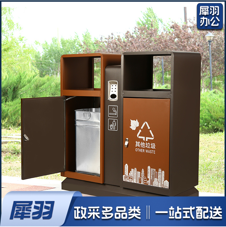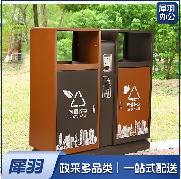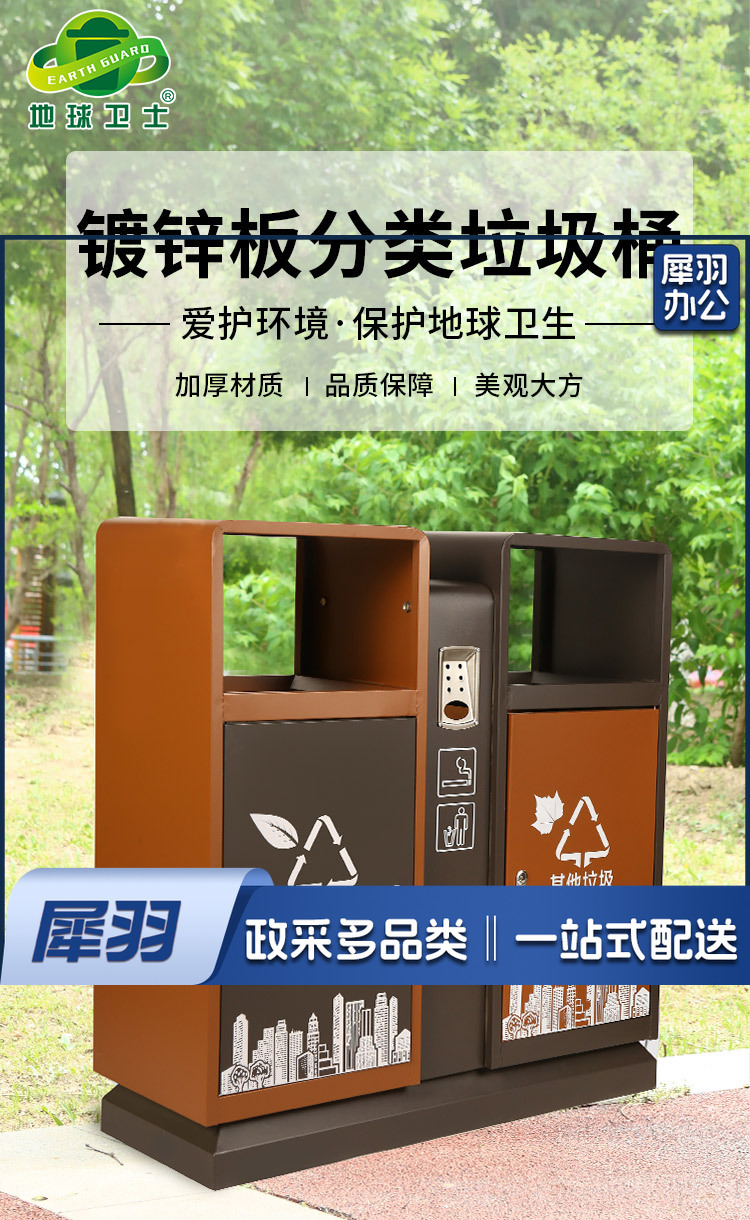 地球卫士 新国标两分类棕色镀锌板户外垃圾桶 市政环卫镀锌板果皮箱大号物业分类环保公园景区街道小区连体垃圾桶