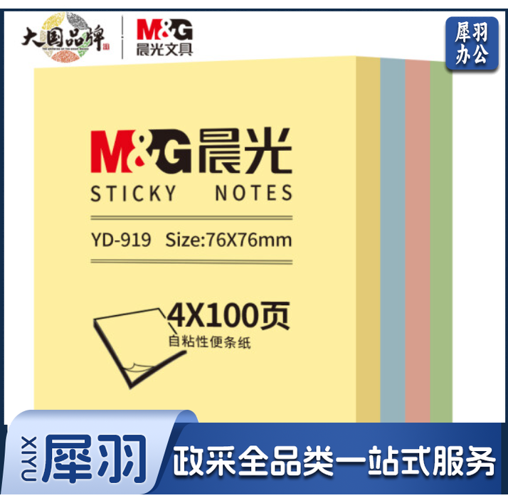 晨光(M&G)YD-919 便利贴76*76mm便签纸n次贴 4色*100页/包装