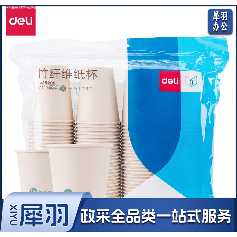 得力纸杯 250ml 100只装 竹纤维一次性杯子 水杯 19208