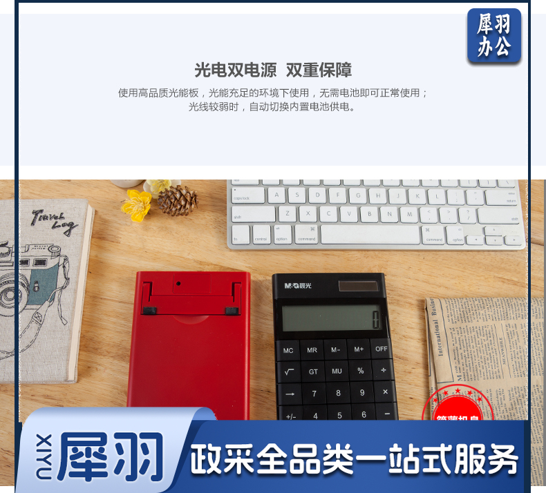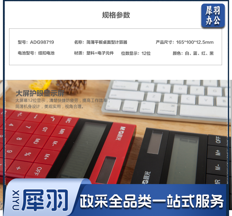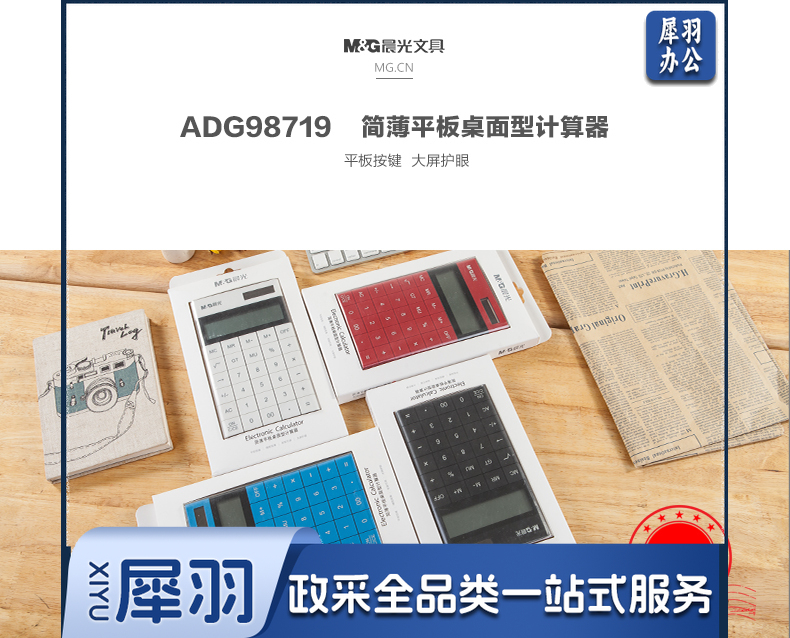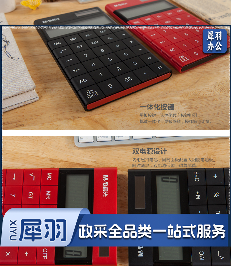 晨光(M&G)商务办公平板桌面计算器 学生财务太阳能计算器ADG98719 白蓝红黑颜色随机