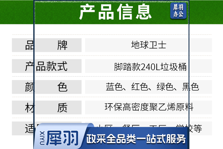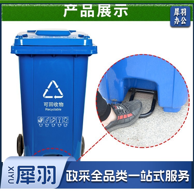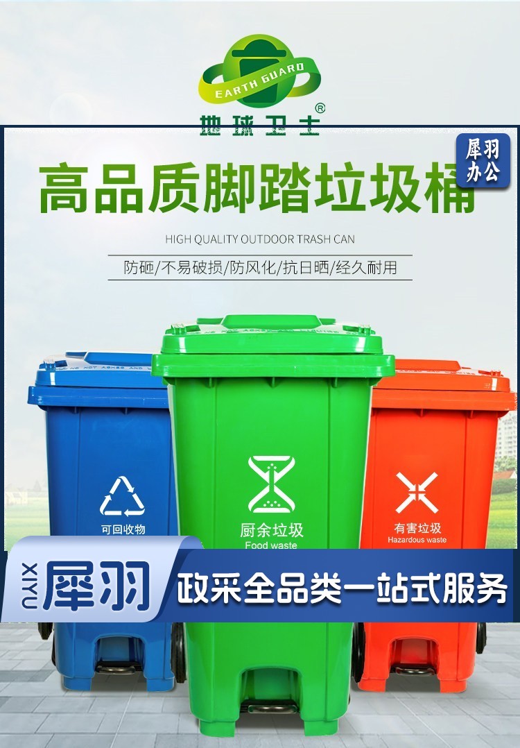 地球卫士户外垃圾桶240L踩踏式加厚新国标上海环卫垃圾桶 工业小区物业饭店240升脚踏式户外医疗大垃圾桶蓝色