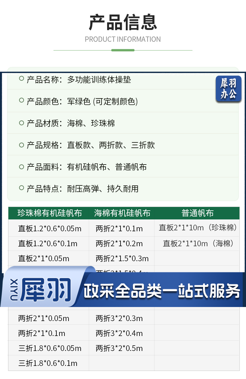 体操垫空翻垫仰卧起坐垫直板2*1*0.05m珍珠棉带粘贴可拼接地垫
