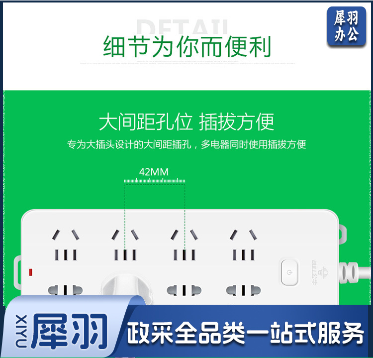 公牛(BULL)GN-217 过载保护插座/插线板/插排/排插/接线板/拖线板 8位总控全长3米