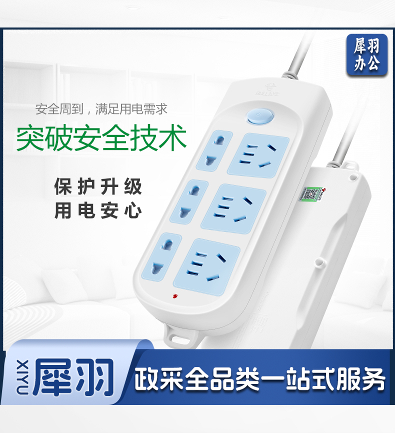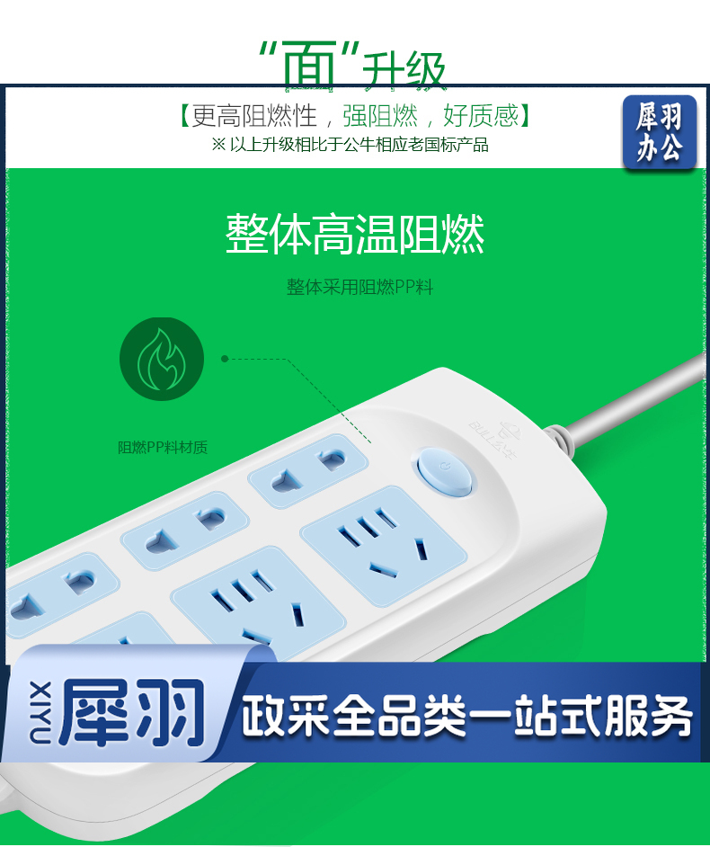 公牛(BULL)新国标插座/插线板/插排/排插/接线板/拖线板 GN-609 6位总控全长3米