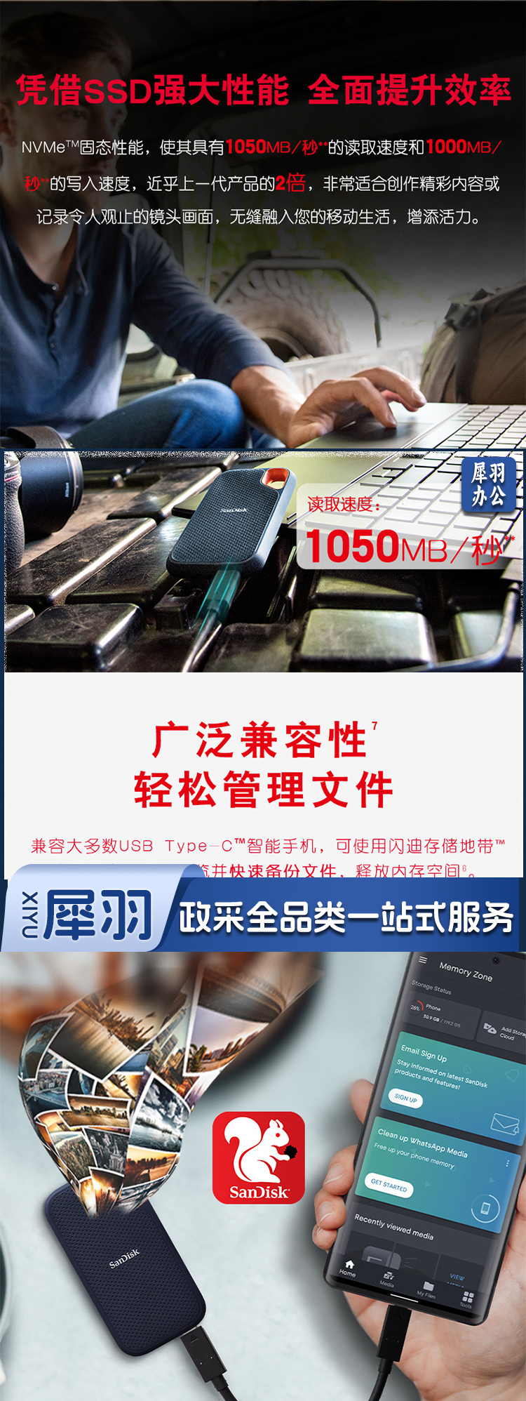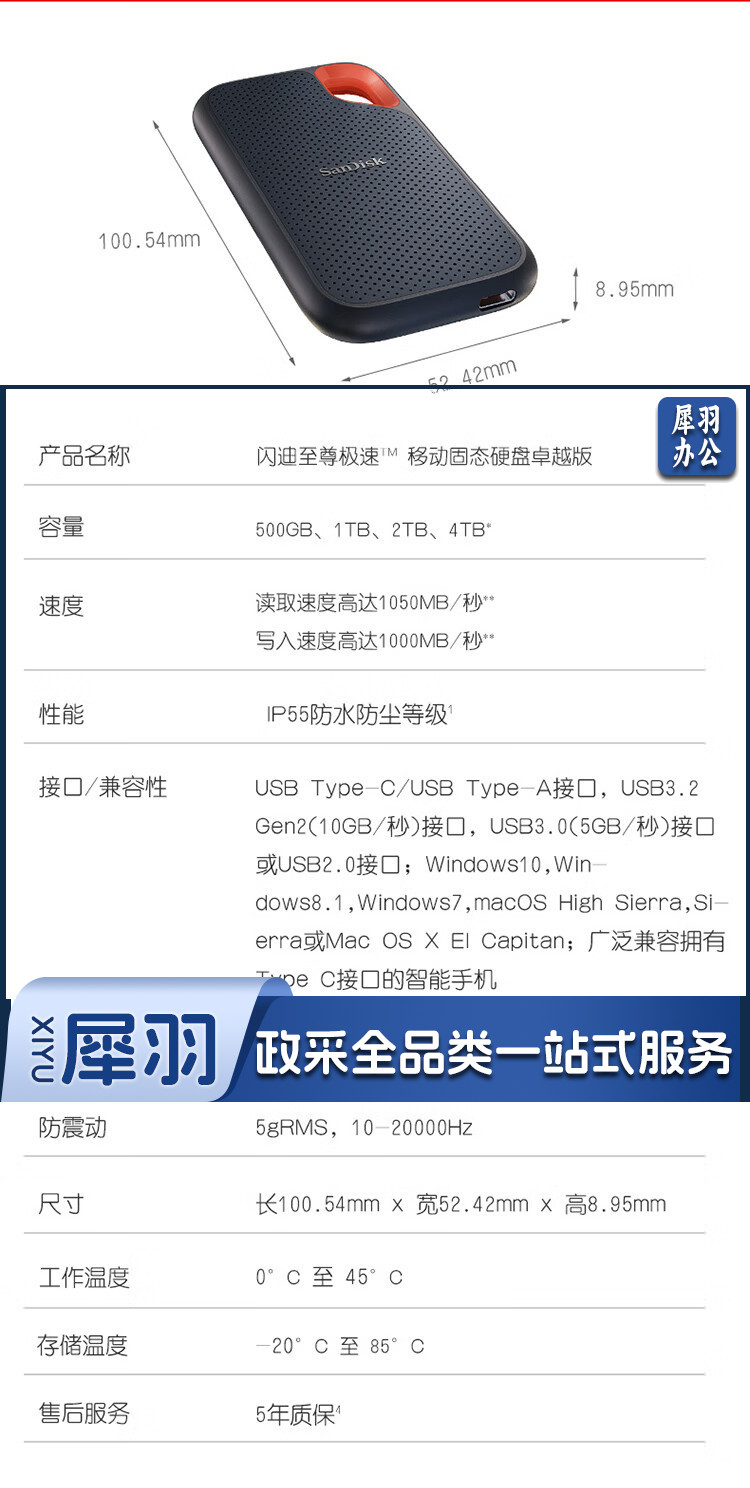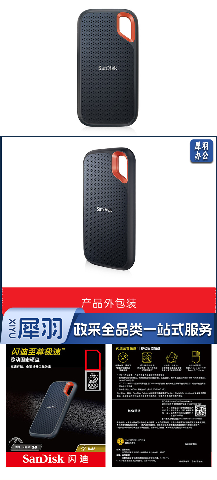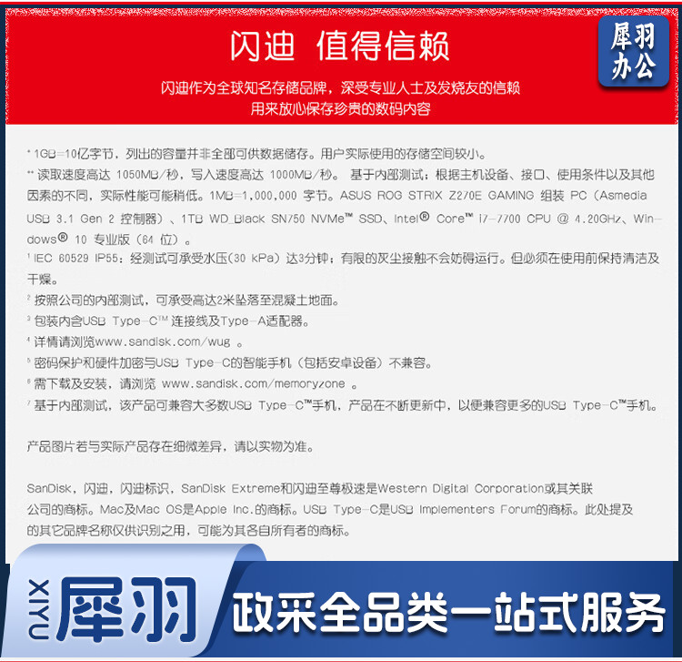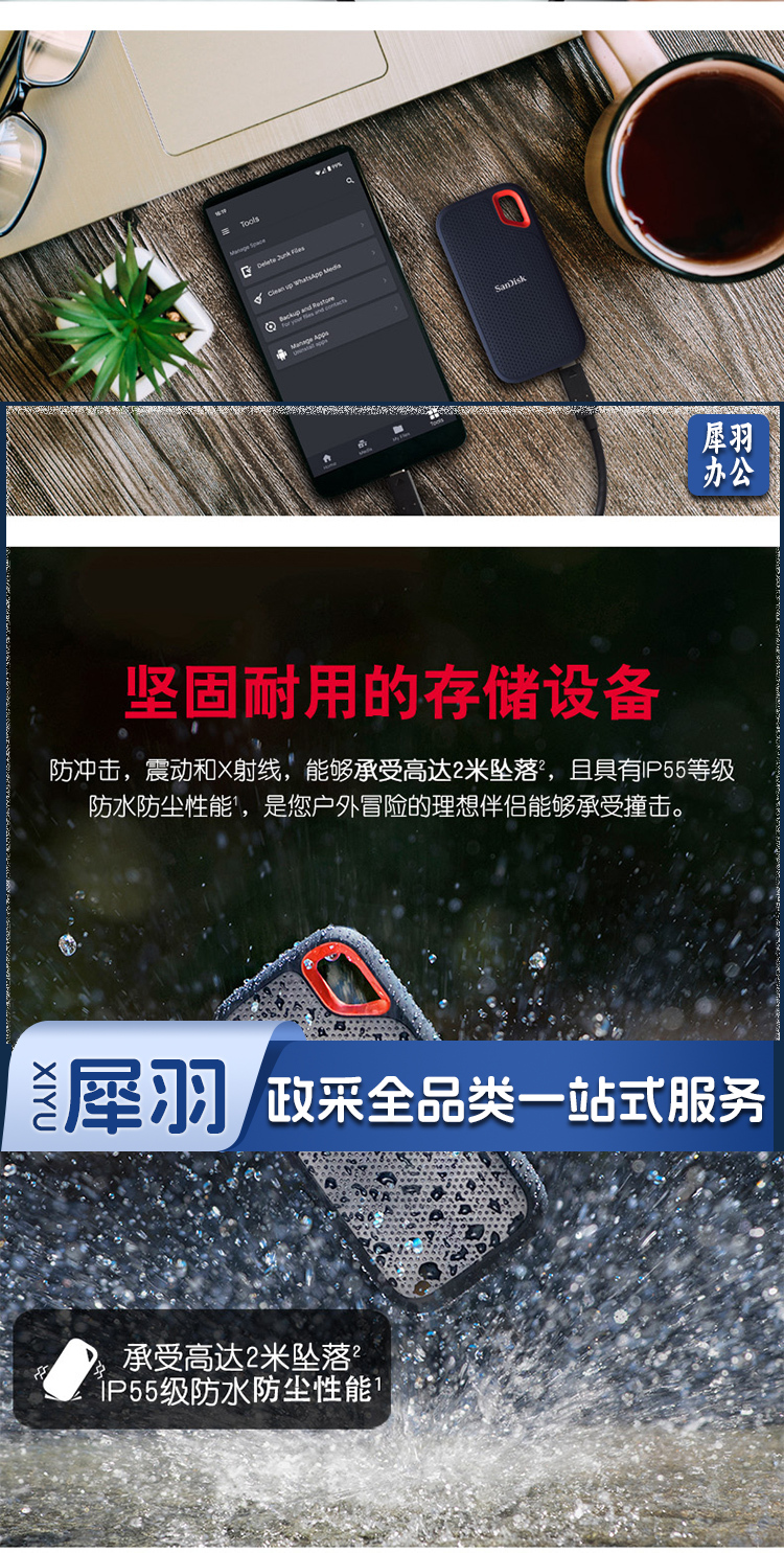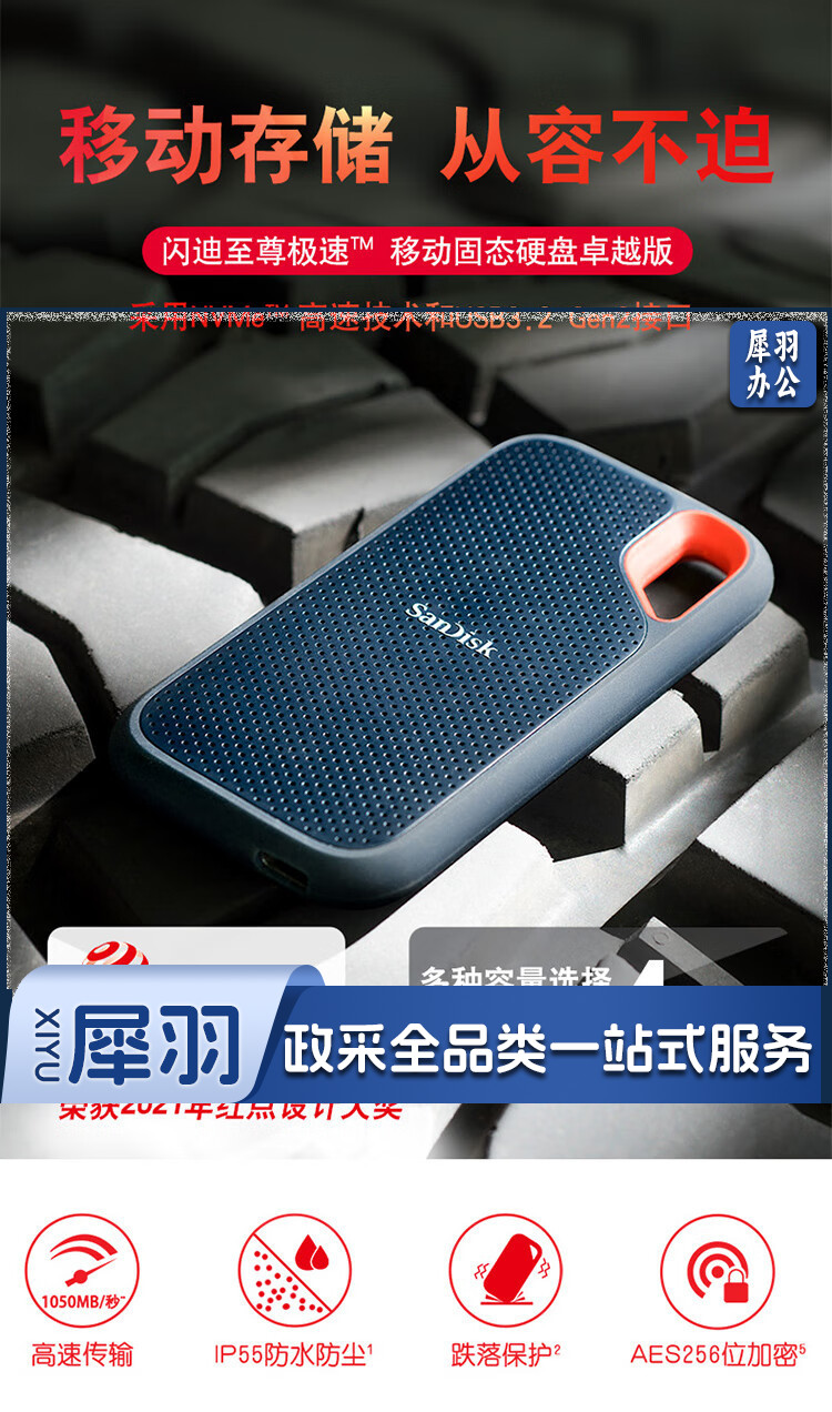 闪迪(SanDisk)1TB Nvme 移动固态硬盘(PSSD)E61至尊极速卓越版 ssd 传输速度1050MB/s IP55等级三防保护