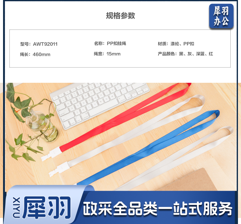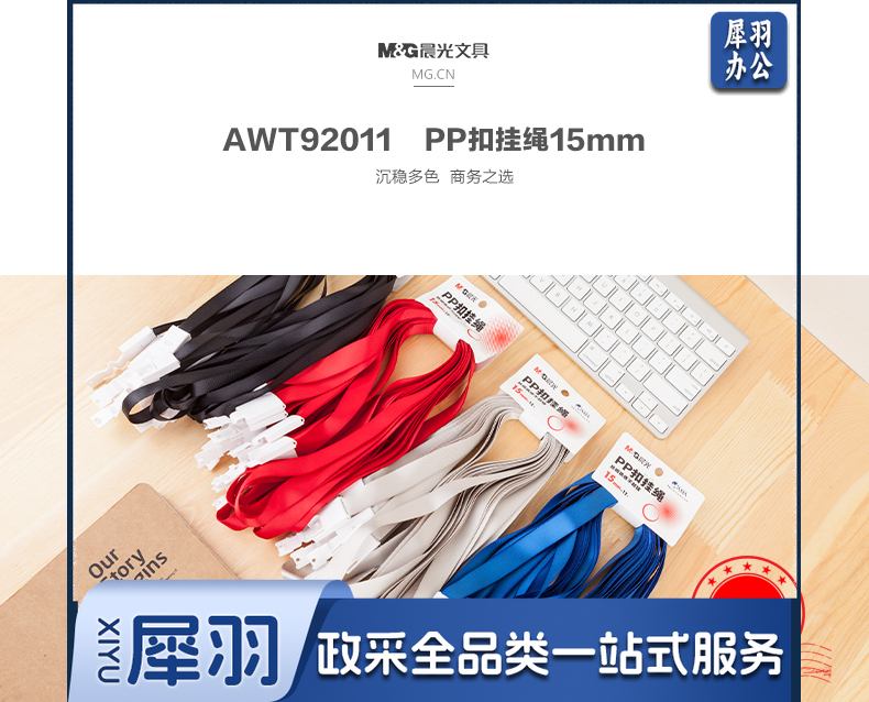 晨光(M&G)工作证卡套门禁卡套工作牌卡包编织挂绳吊绳AWT92011PP扣挂绳15mm红蓝灰黑颜色随机 一包12只装